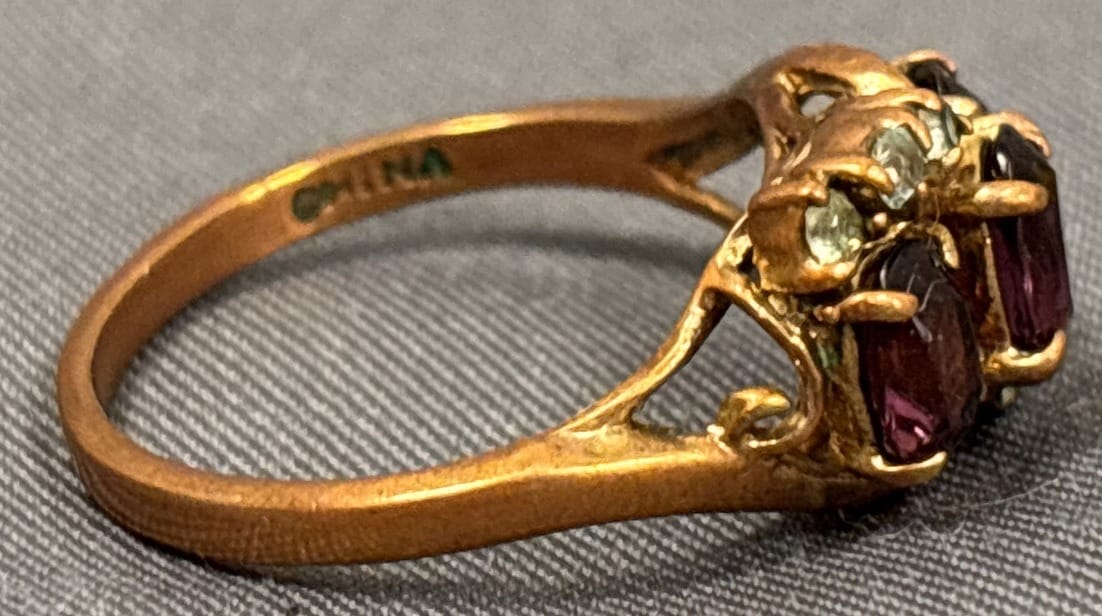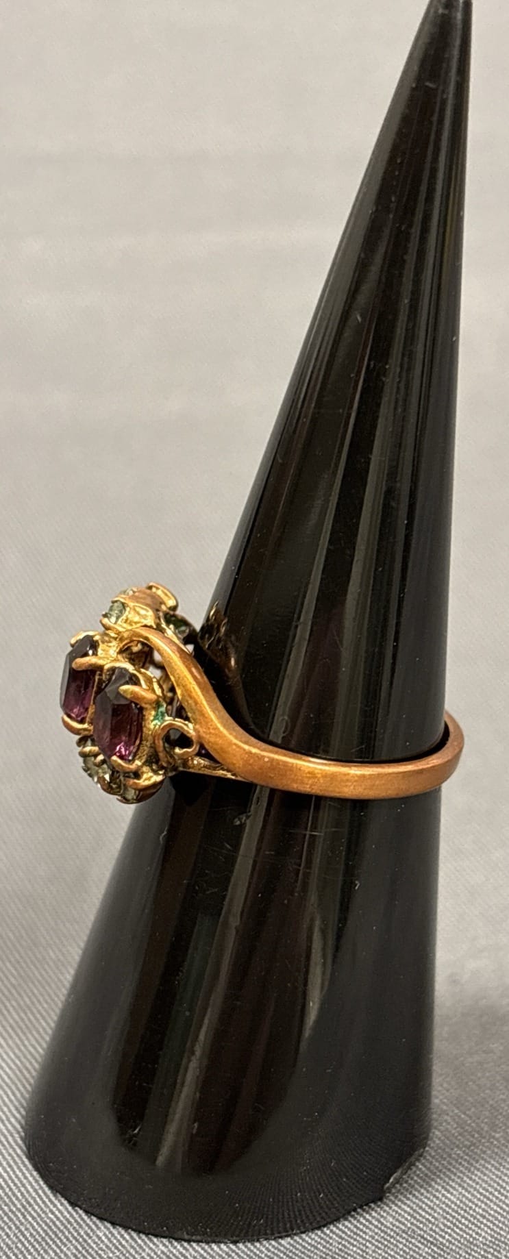 1136 Antique Copper Ring with Purple and Clear Faceted Stones