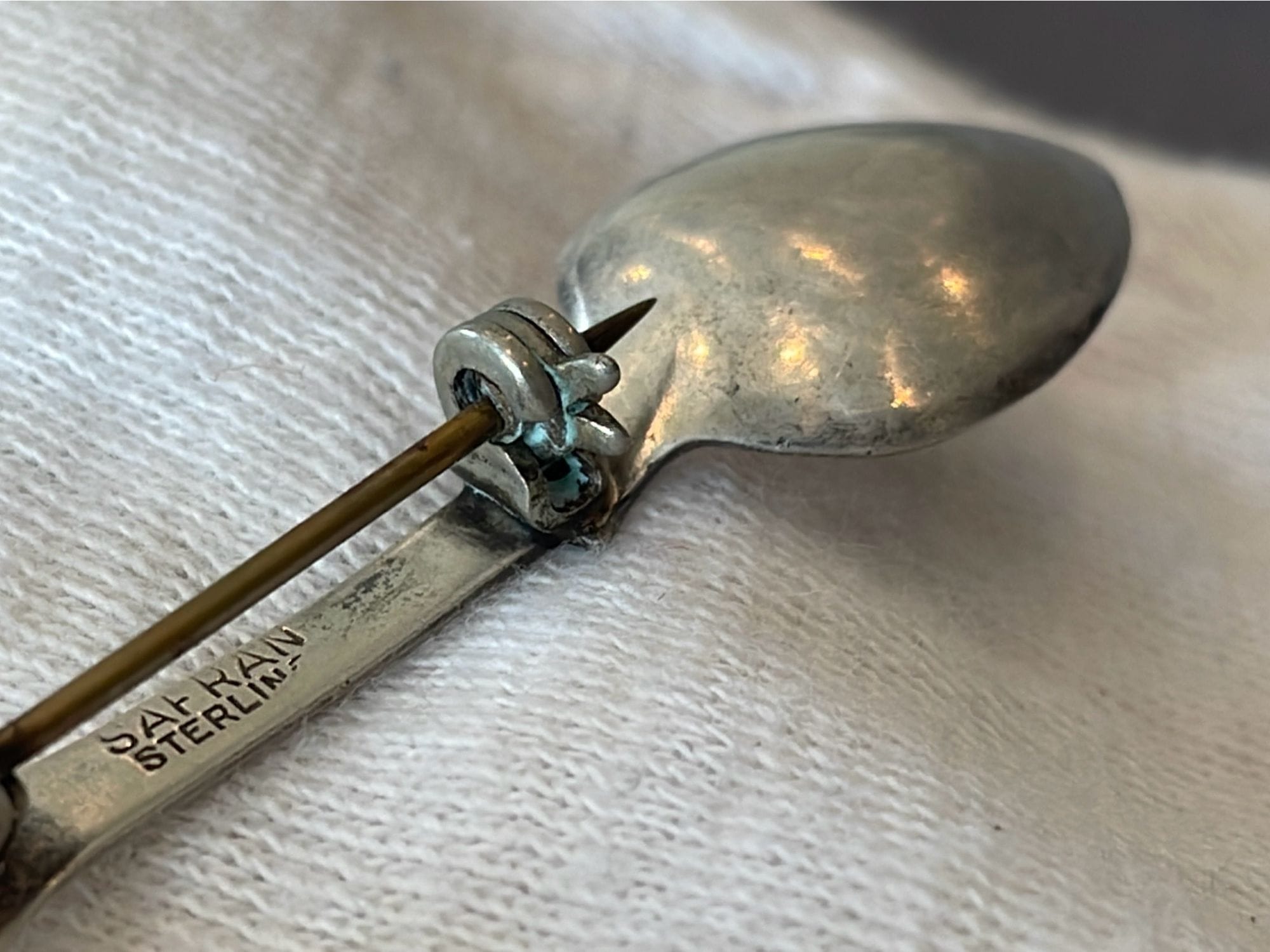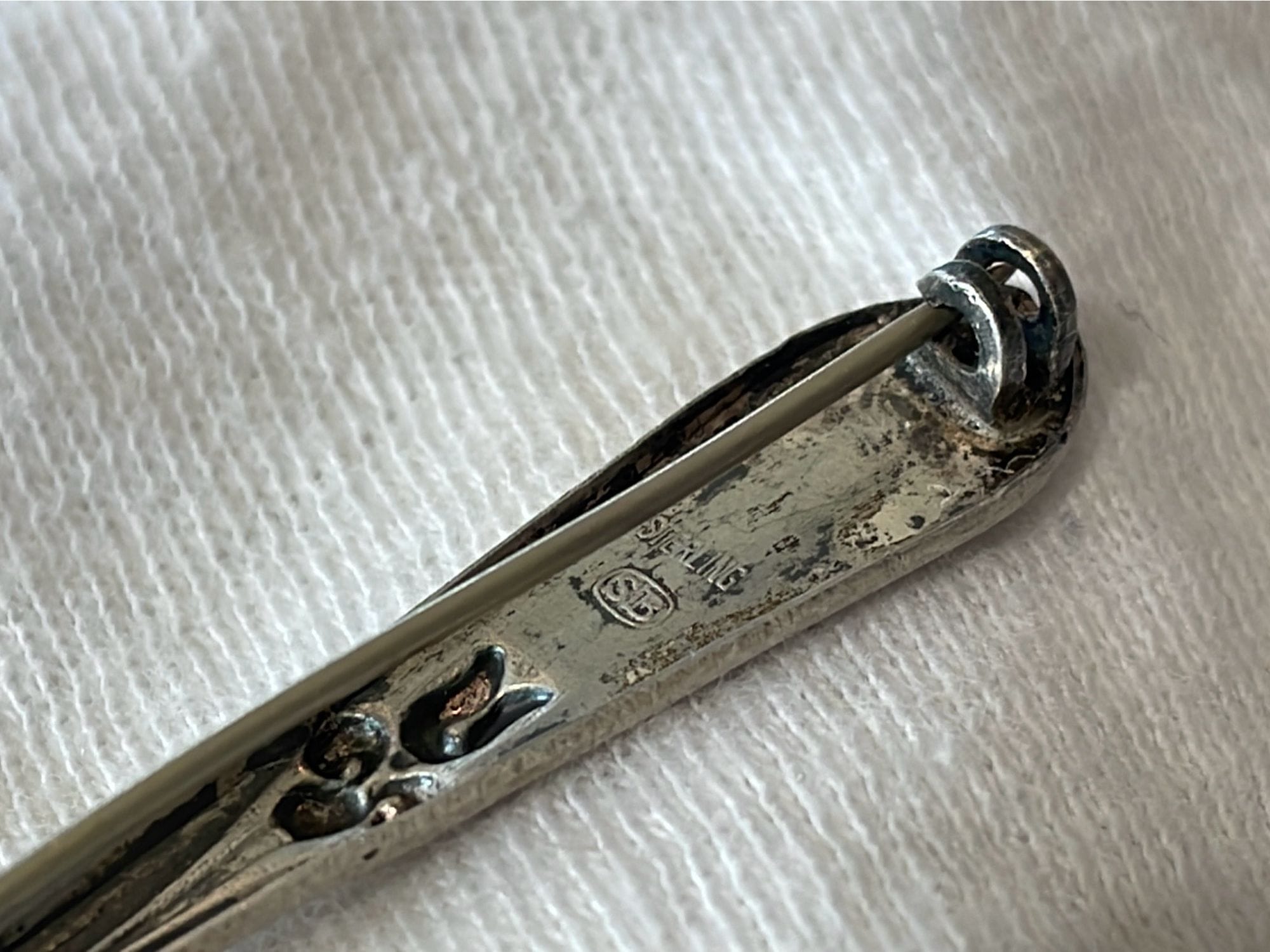 1047 Antique Sterling Spoon Pin Marked Reed & Barton Cameo
