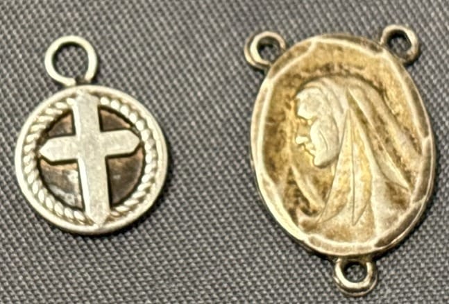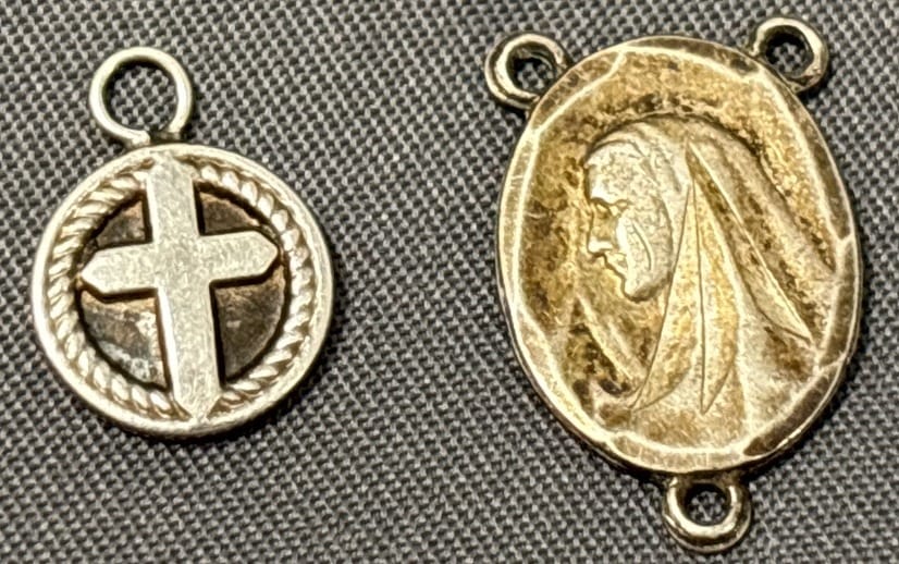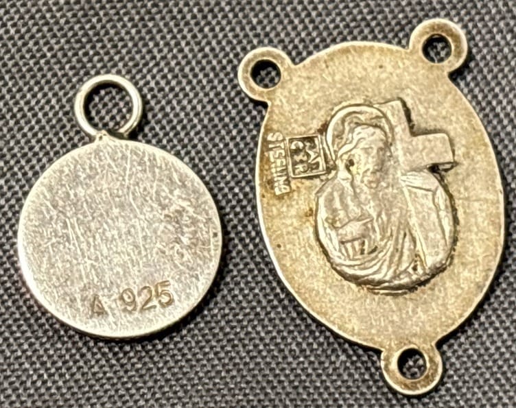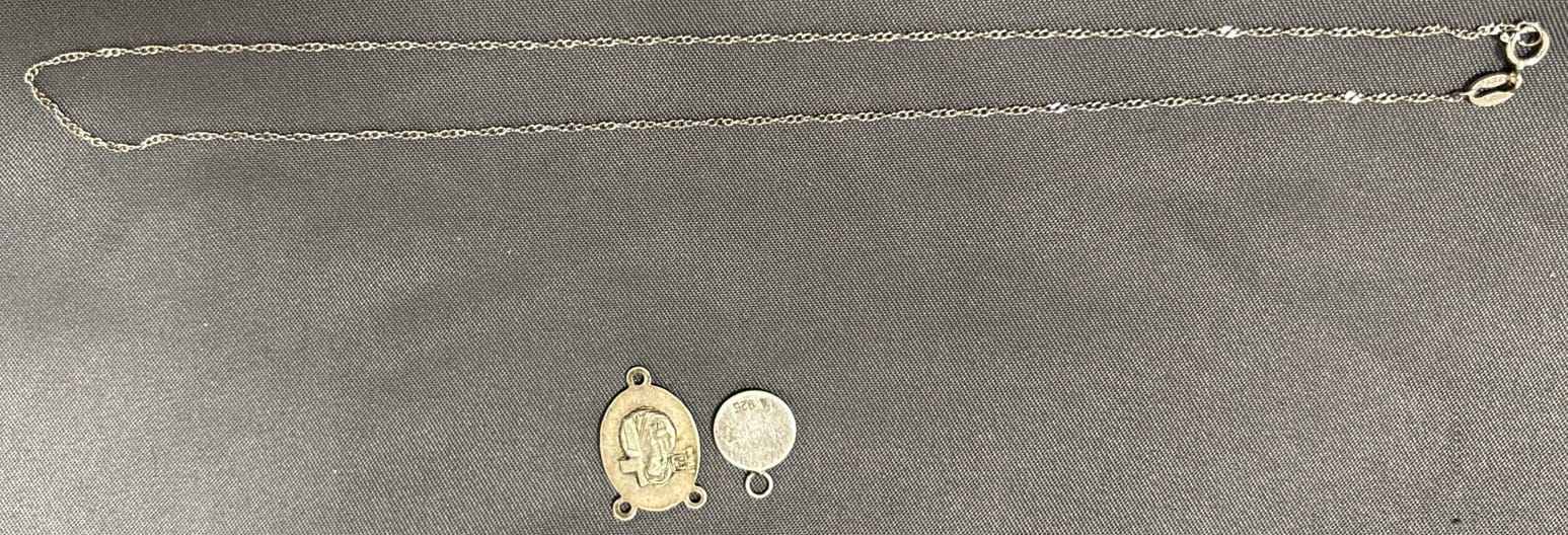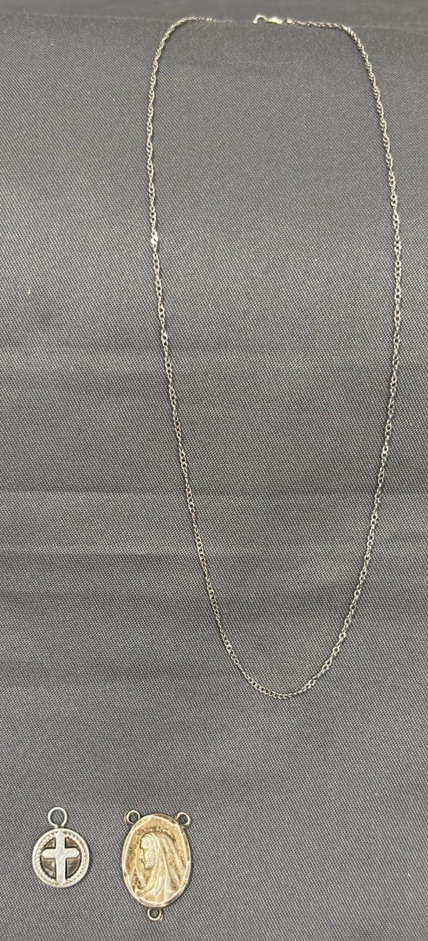 1138 .925 Silver Cross Pendant and Sterling Rosary Pendant with 16 inch .925 Silver Chain