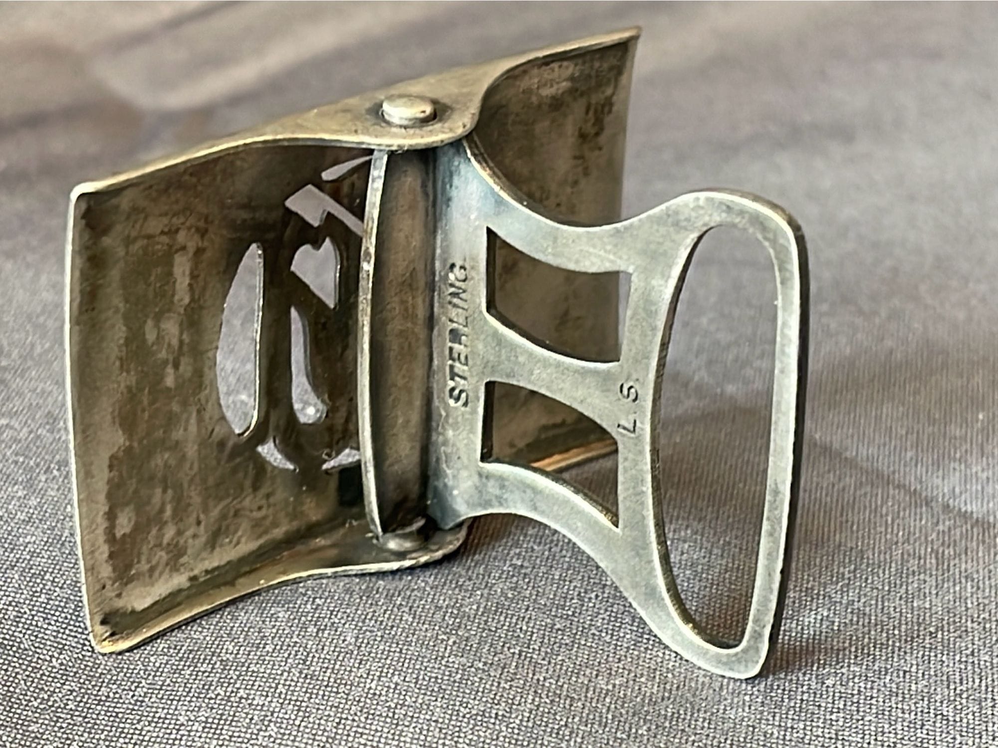 1146 Antique .925 Silver L.S. Hallmark Belt Buckle - 13 Grams