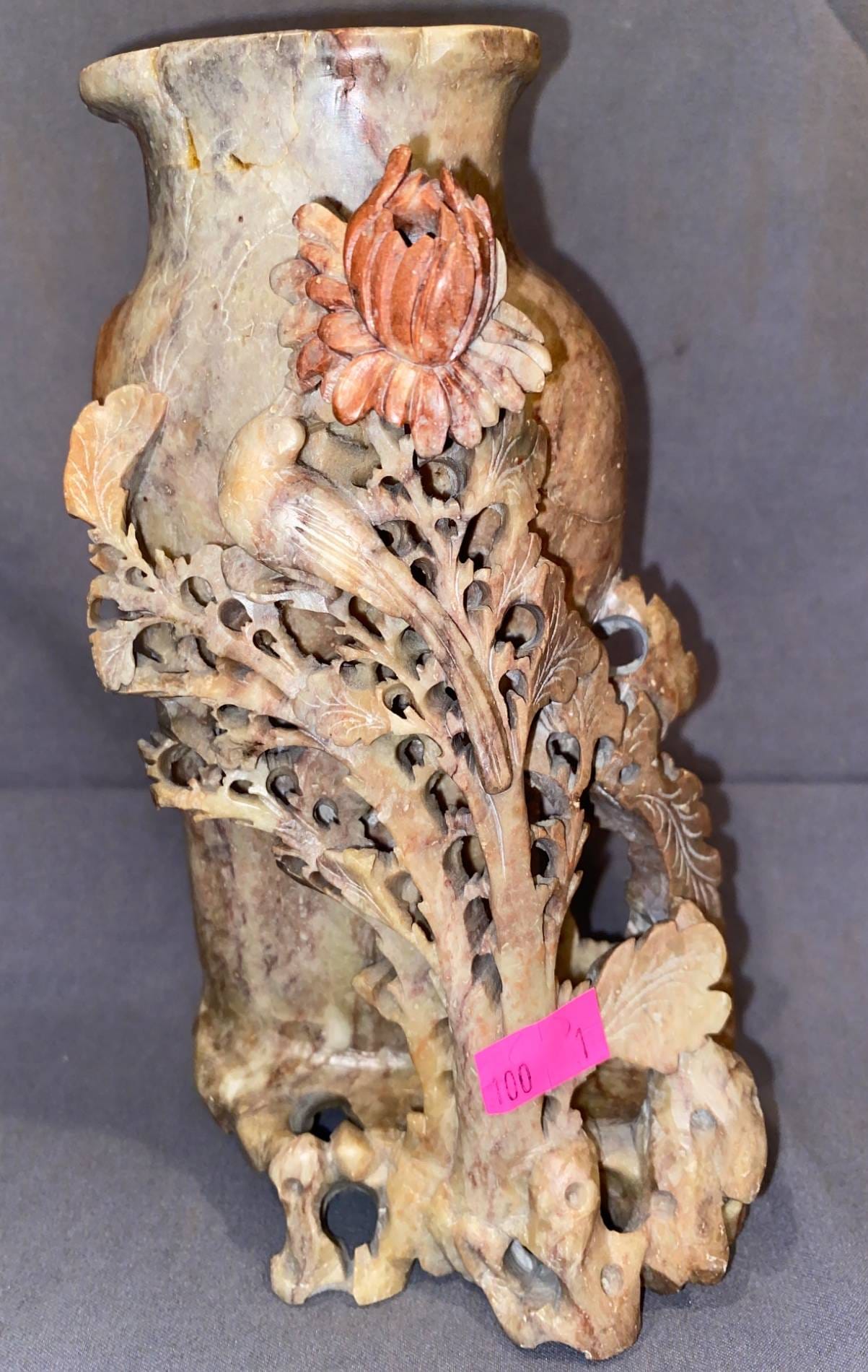 100 Carved Stone Vase with Floral Motif