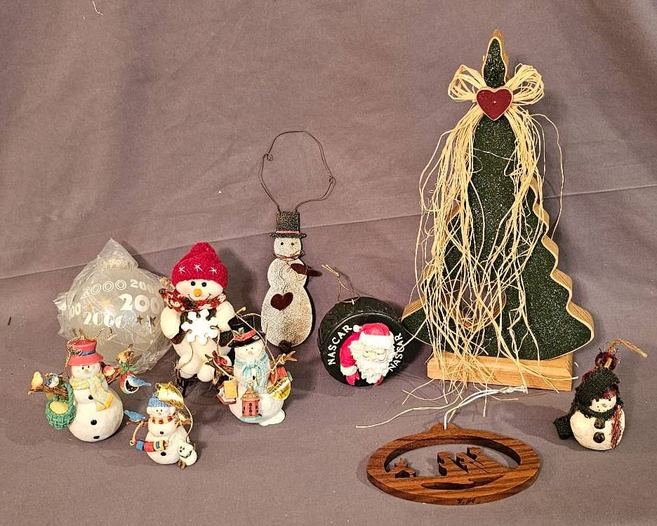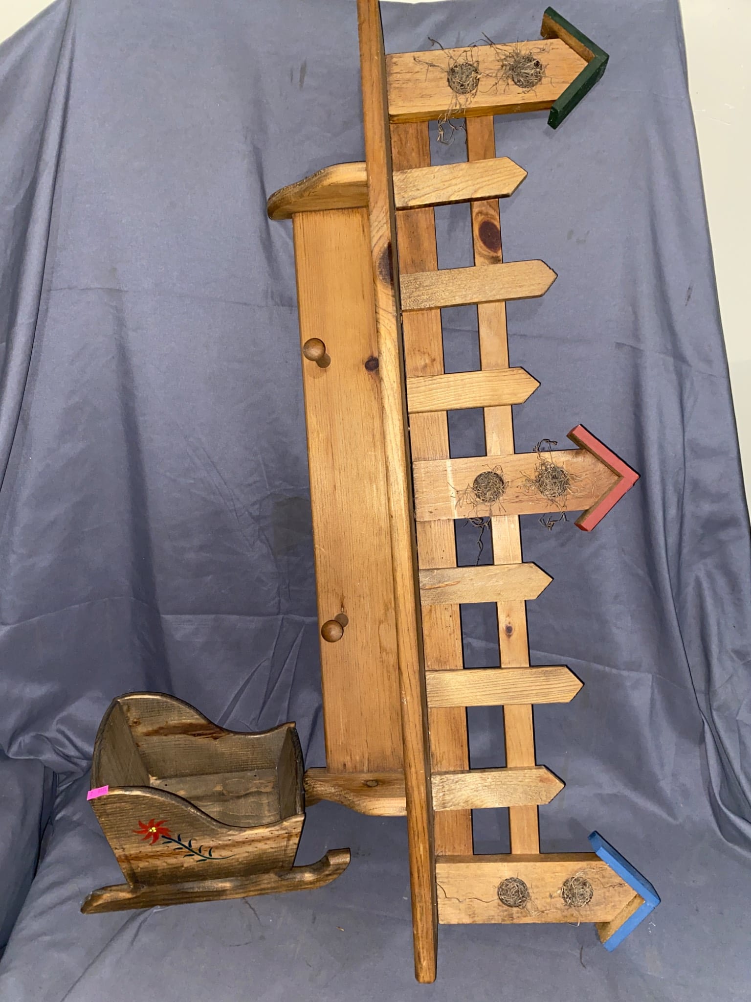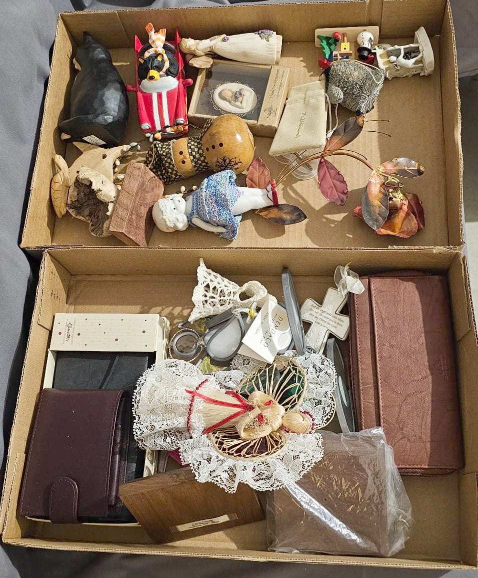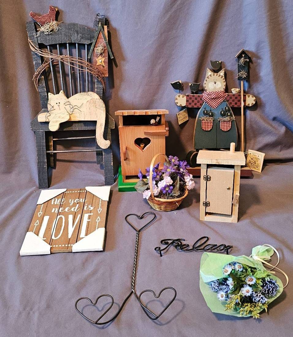 425 Group of Craft-Themed Decor Items with Wood Figures and Floral Accents