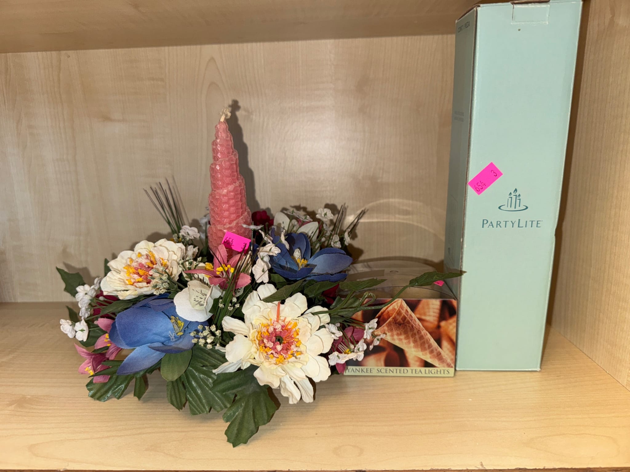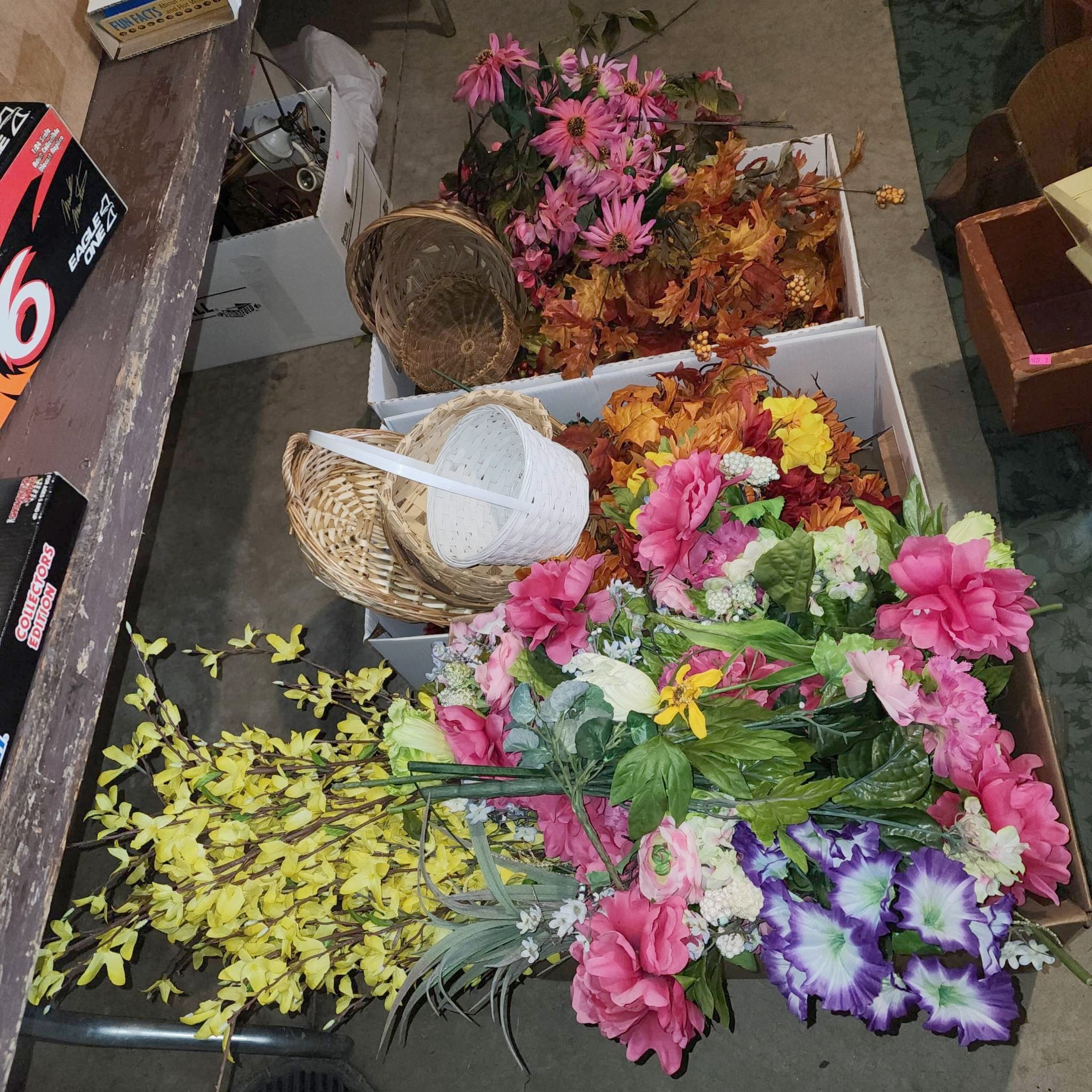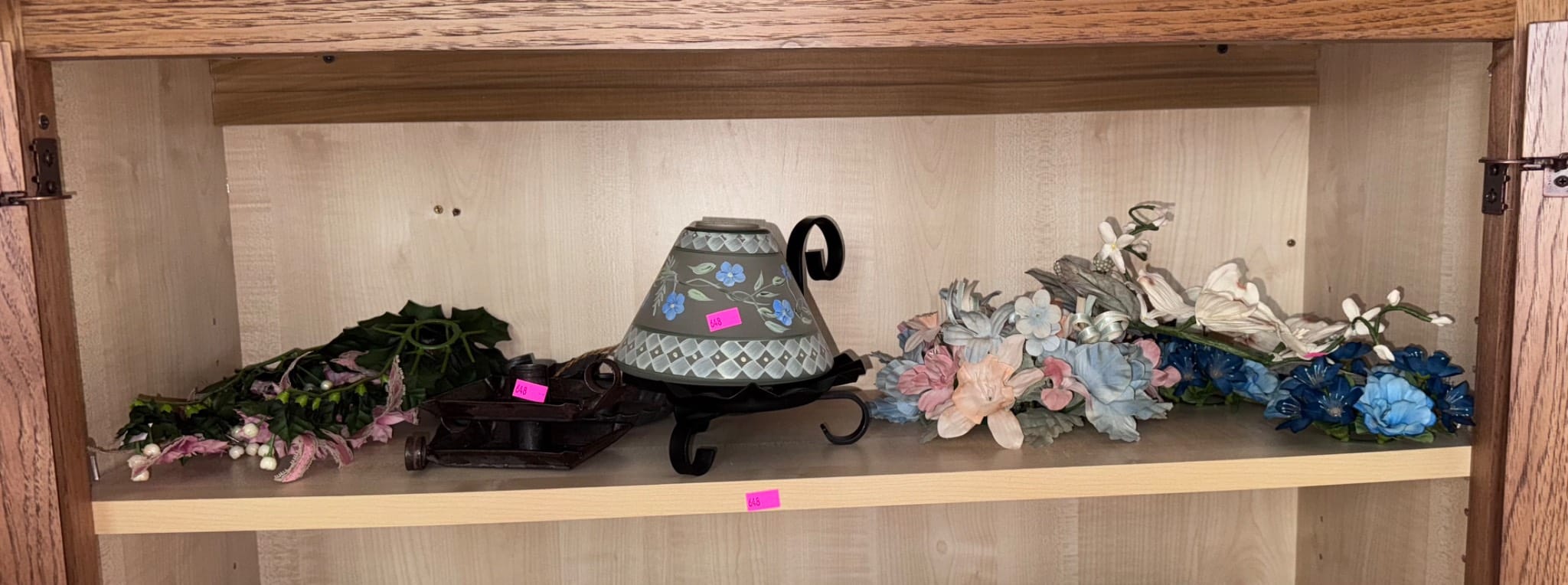 425 Group of Craft-Themed Decor Items with Wood Figures and Floral Accents