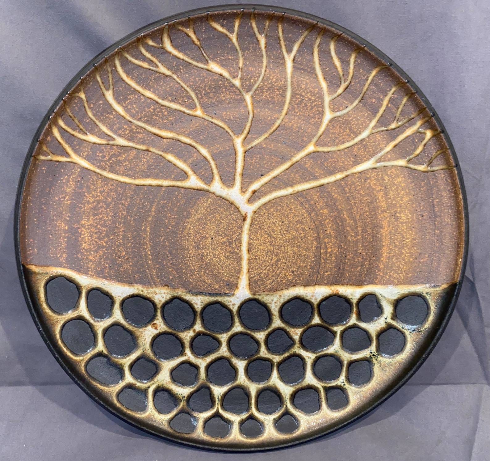 103 Stoneware Plate with Tree and Rock-Like Motif by Kristy Bebber