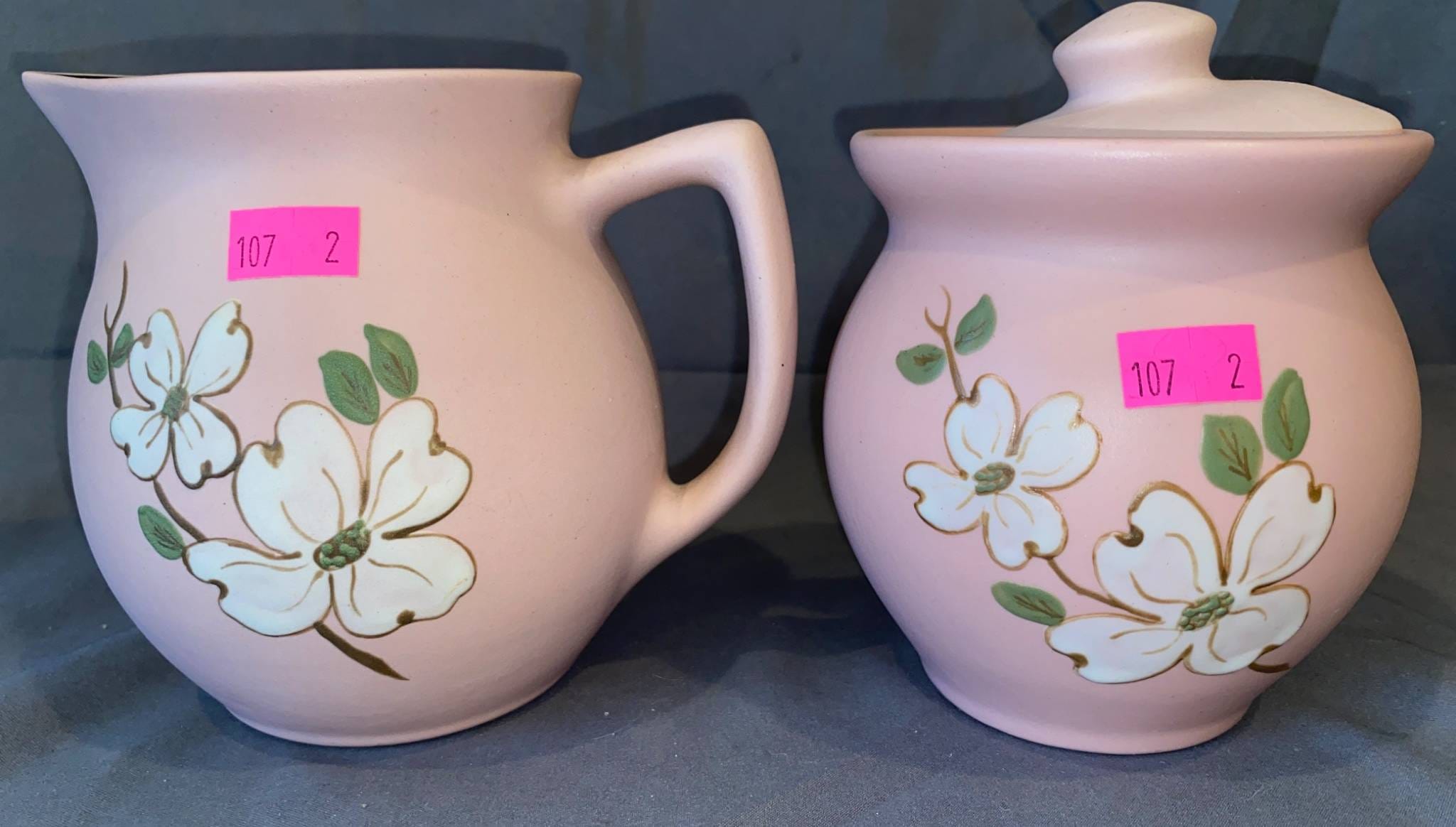 107 Pink Pitcher and Covered Sugar Bowl by Pigeon Forge Pottery