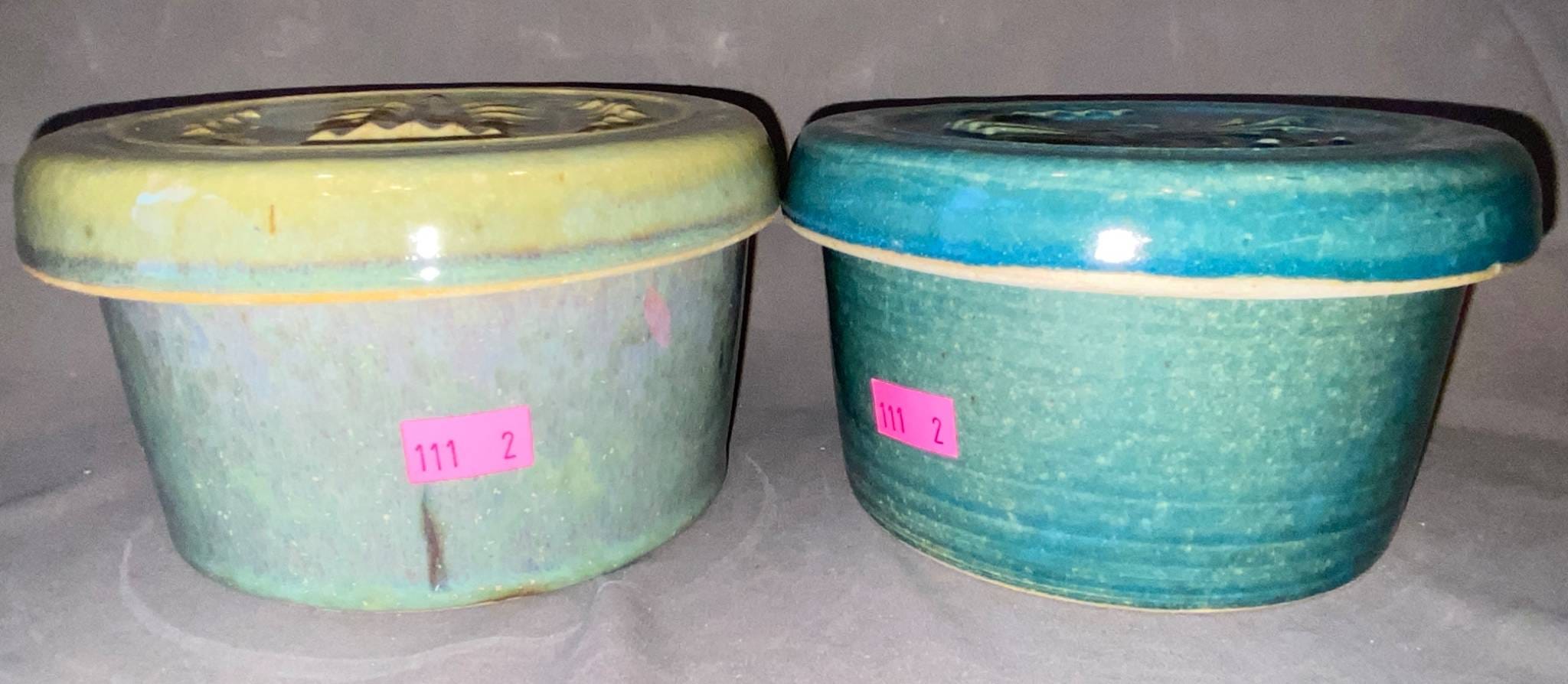 111 Pigeon Forge Pottery Covered Bowls with Embossed Wheat Design 5.5?