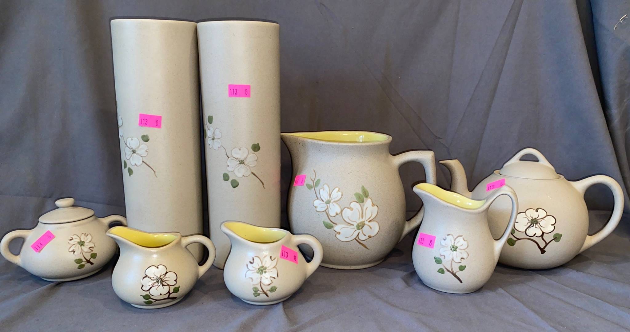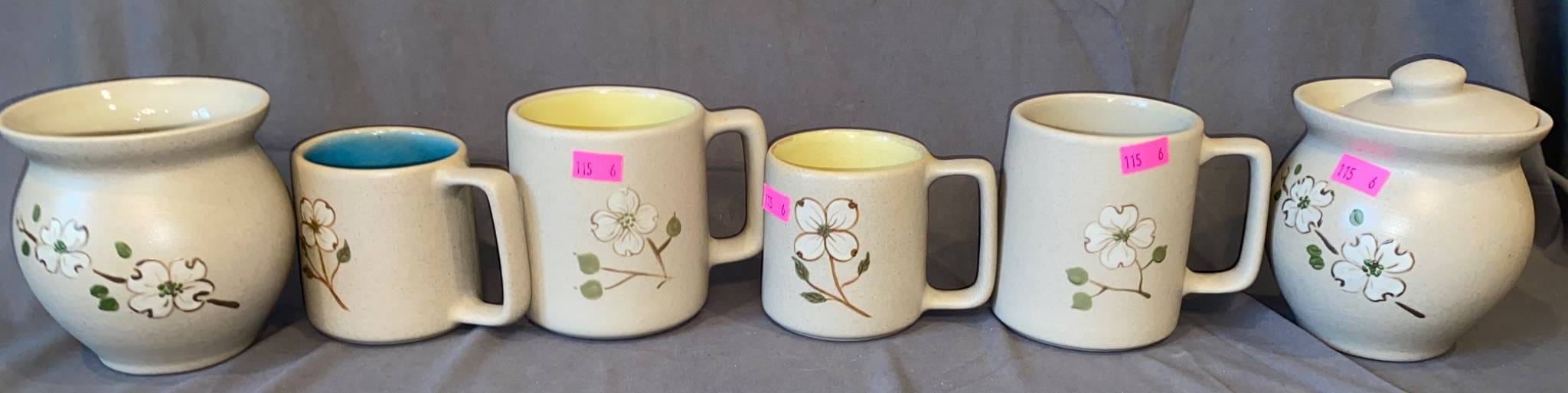 115 Pigeon Forge Pottery Ceramic Set with Floral Motif 3-4” H