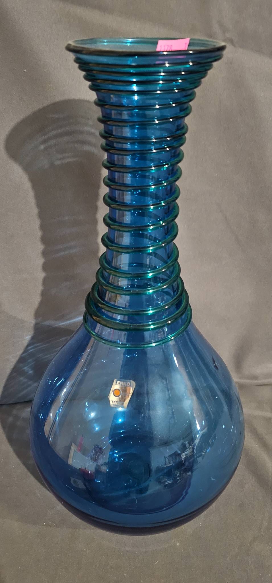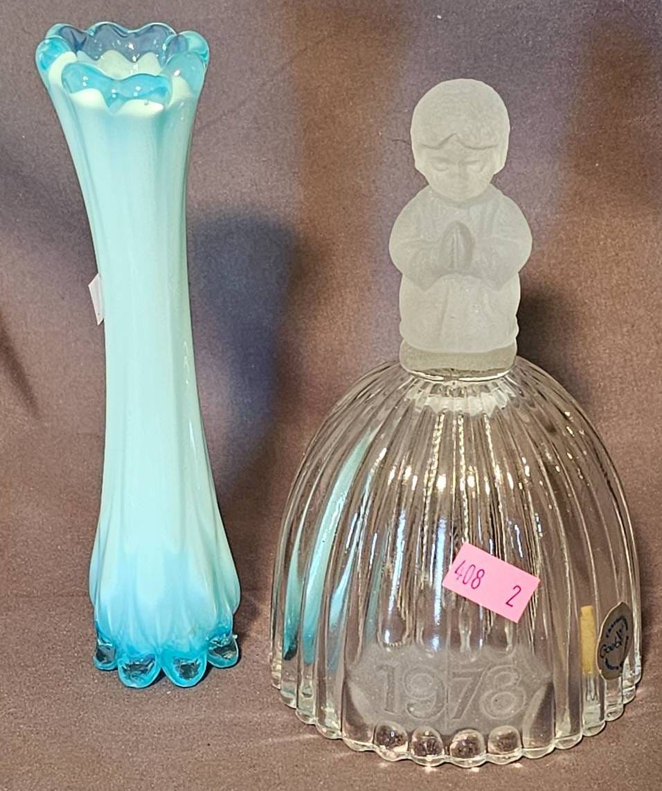 408 Goebel Crystal Bell Figurine and Blue Opalescent Glass Vase