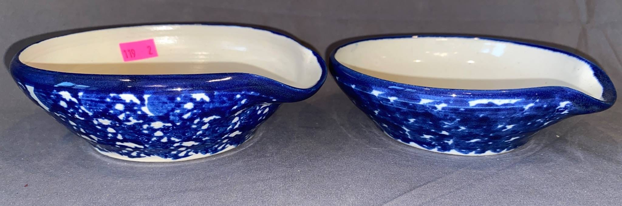 119 Pair of Blue and White Ceramic Bowls with Heart Motif 5”W