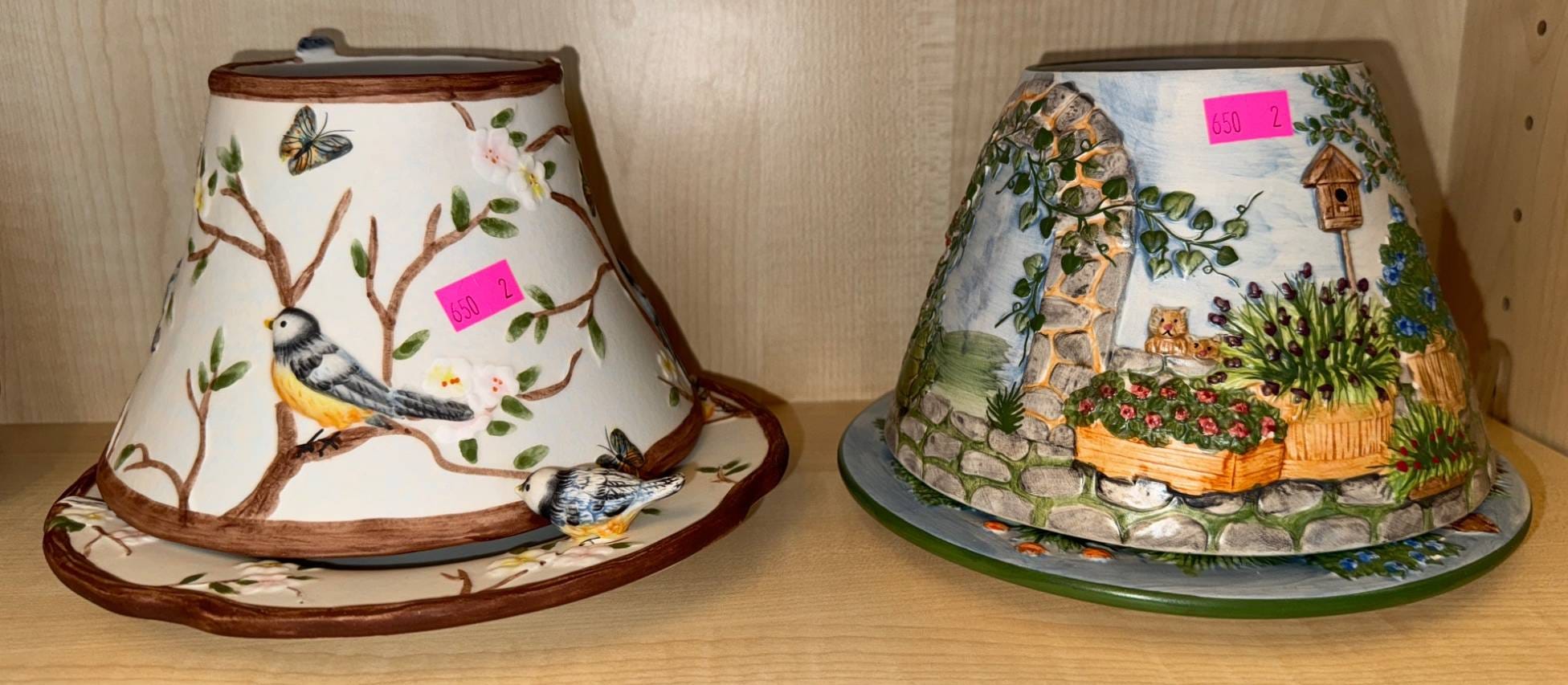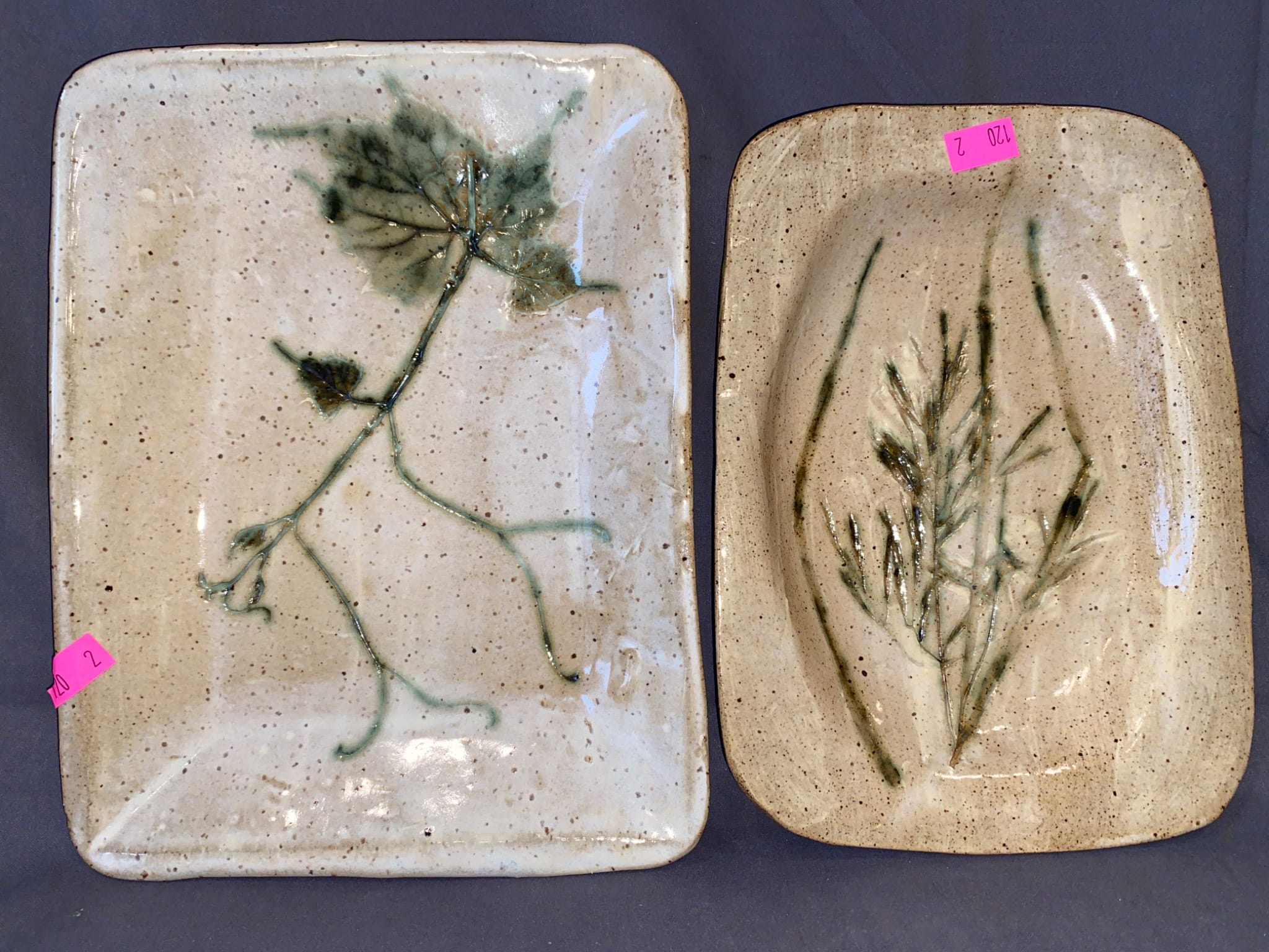 120 Pair of Glazed Ceramic Dishes with Botanical Motif