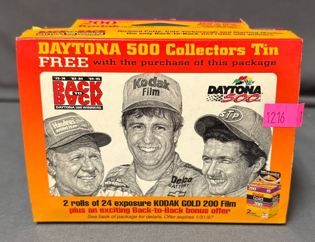 1216 Daytona 500 Collectors Tin with (3) Die-Cast Cars 1/64 Scale
