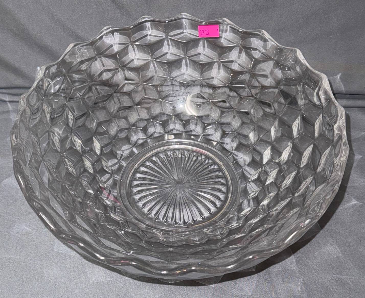 1218 Clear Glass Bowl with Diamond and Starburst Pattern 10.5” x 4”