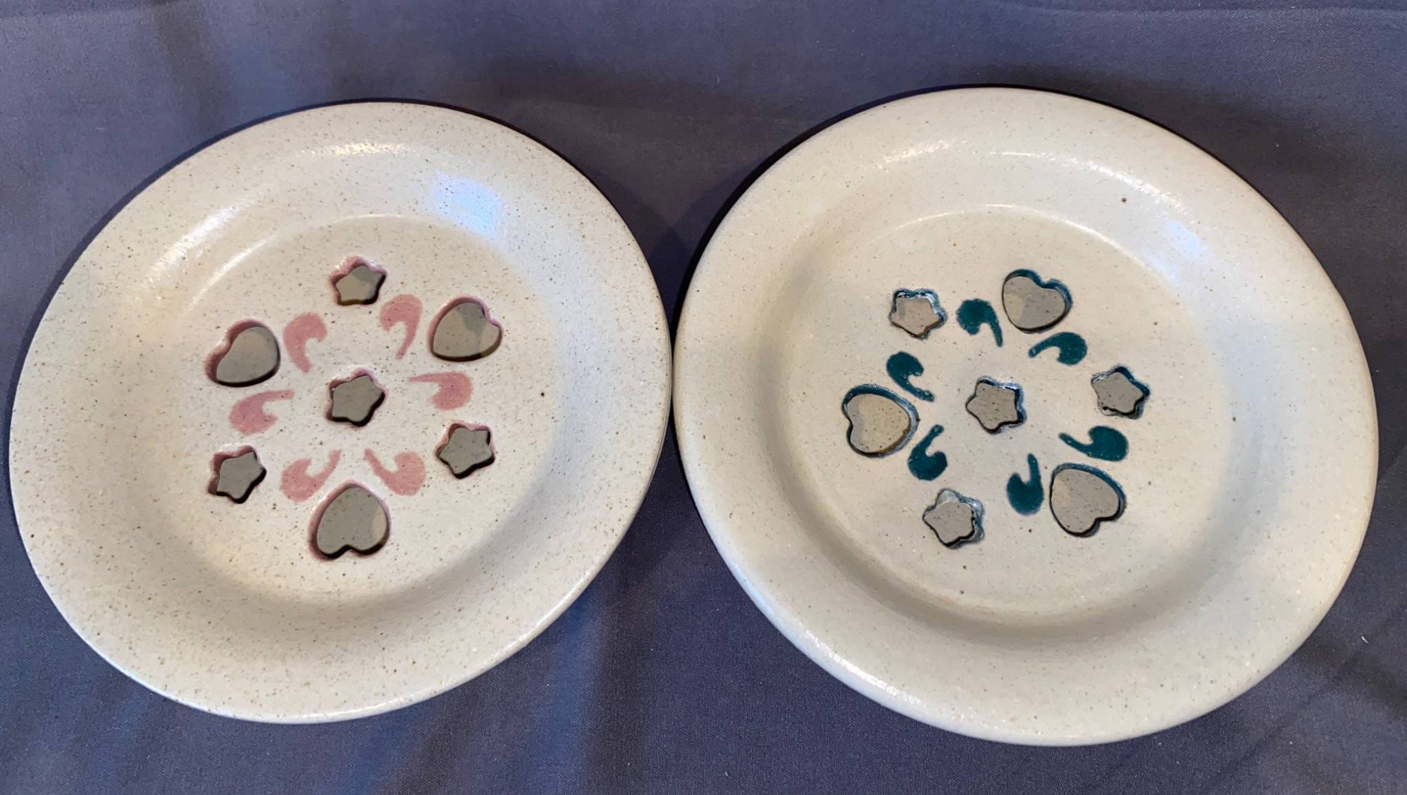 122 Two Ceramic Pie Plates with Heart and Star Cutouts 5”W