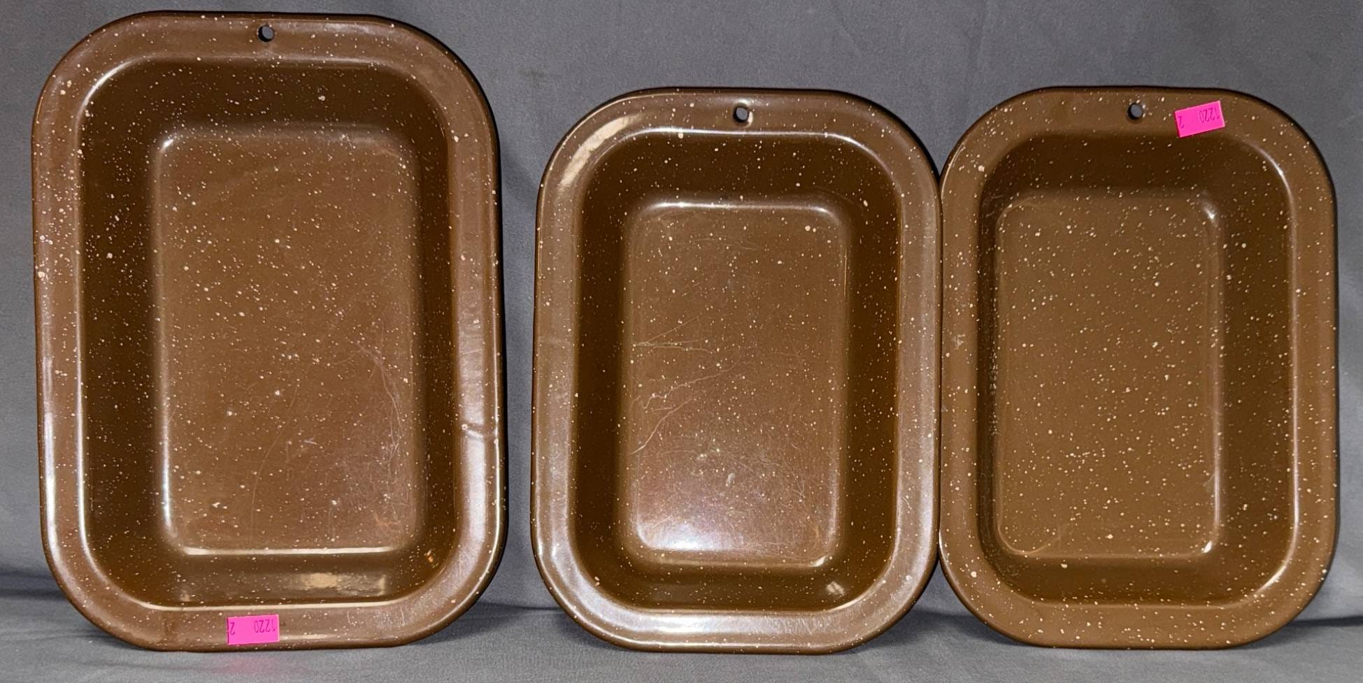 1220 Three Brown Enamelware Baking Dishes in Graduated Sizes