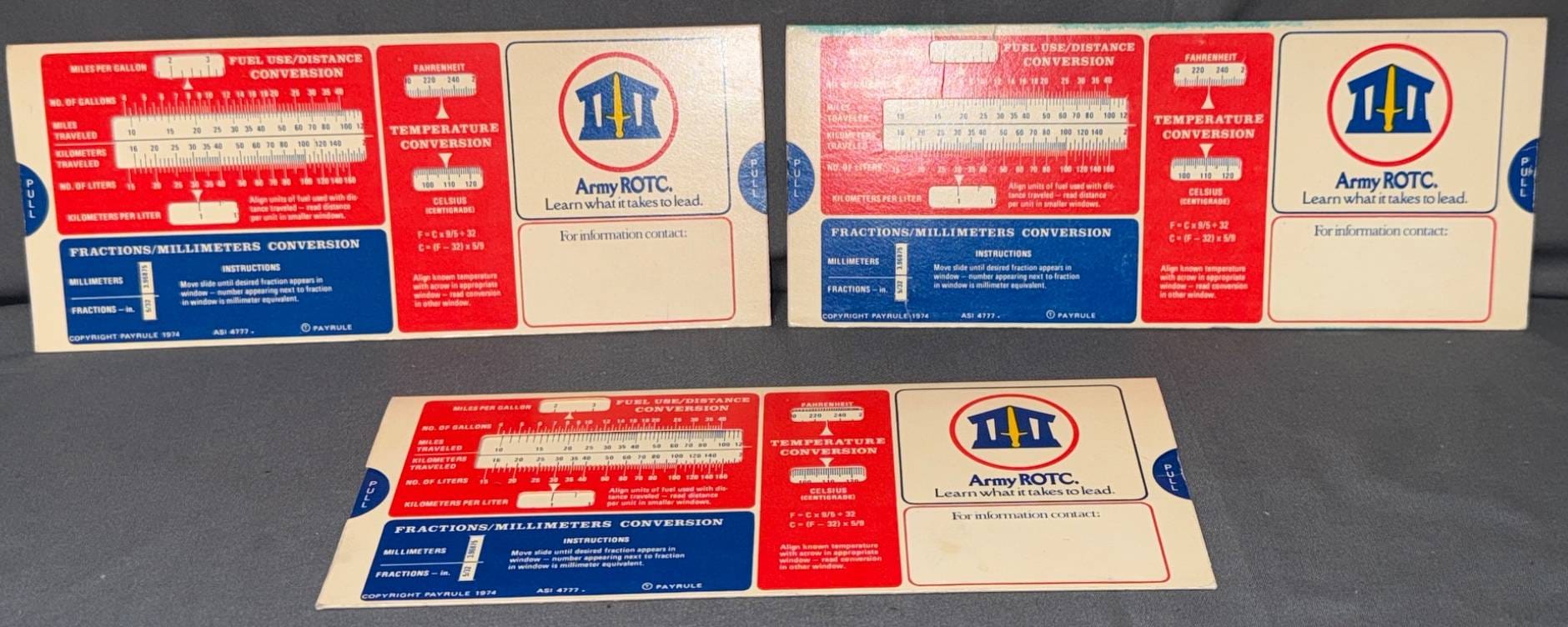 1223 (3) Metric Conversion Slide Charts for Army ROTC Marketing