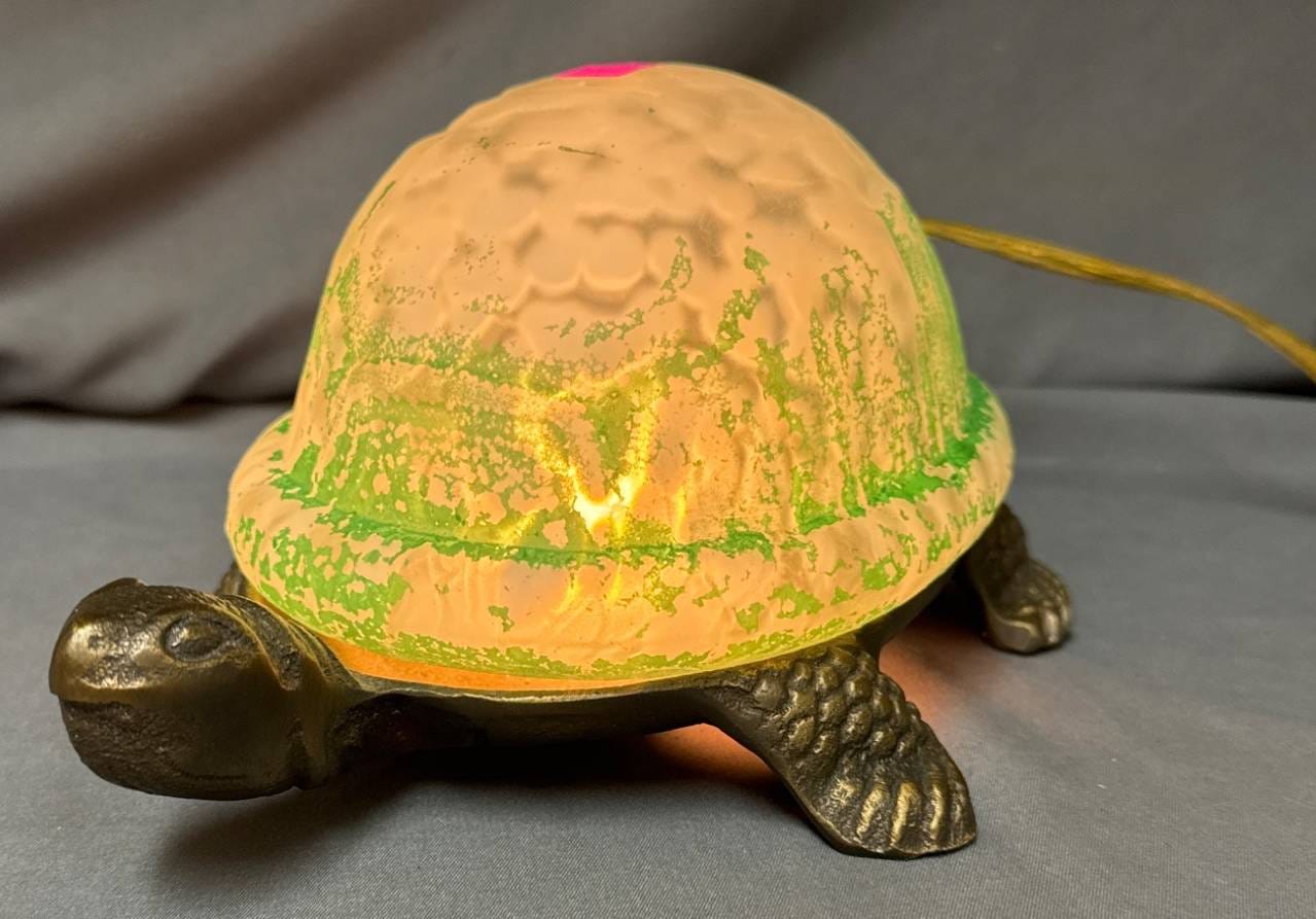 1227 Turtle-Shaped Lighted Accent Lamp with Painted Glass Shell and Metal Base 9?x4?