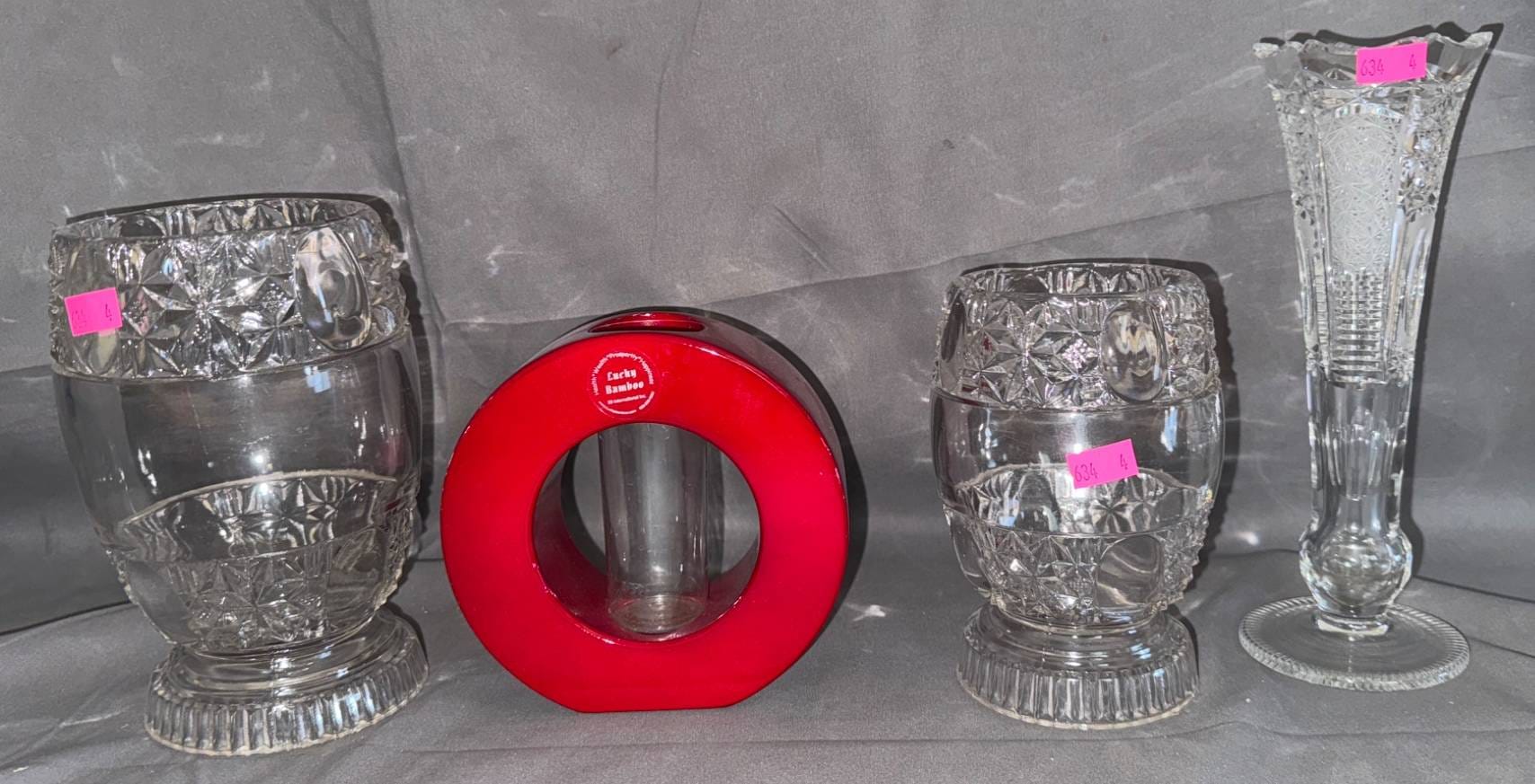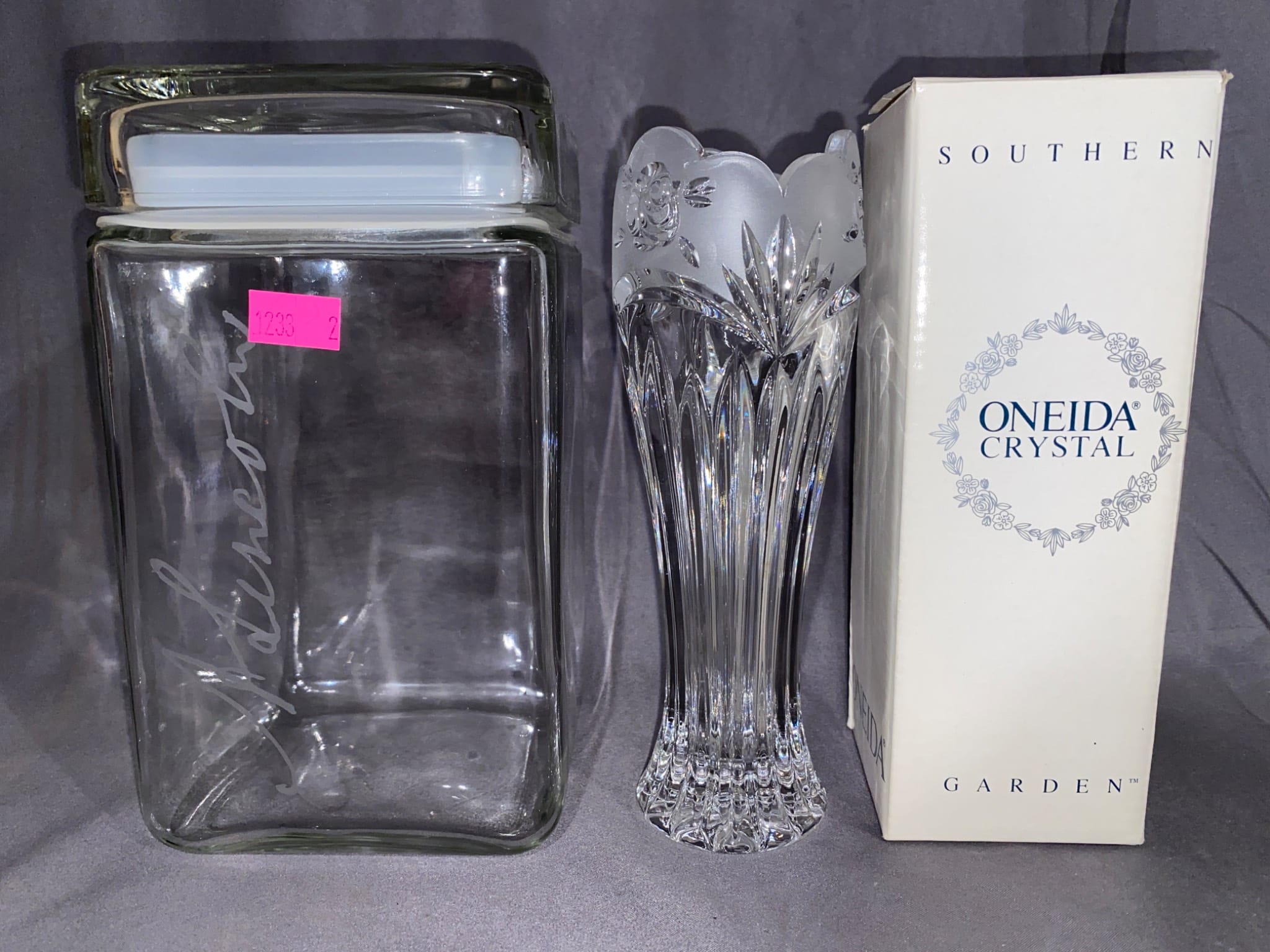 1233 Clear Glass Jar and Oneida Crystal ‘Southern Garden’ Bud Vase