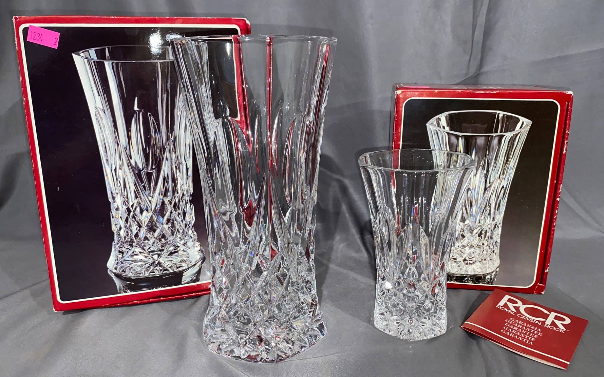 1234 RCR Cristalleria Italiana Lead Crystal Vases, 8?H, 5?H
