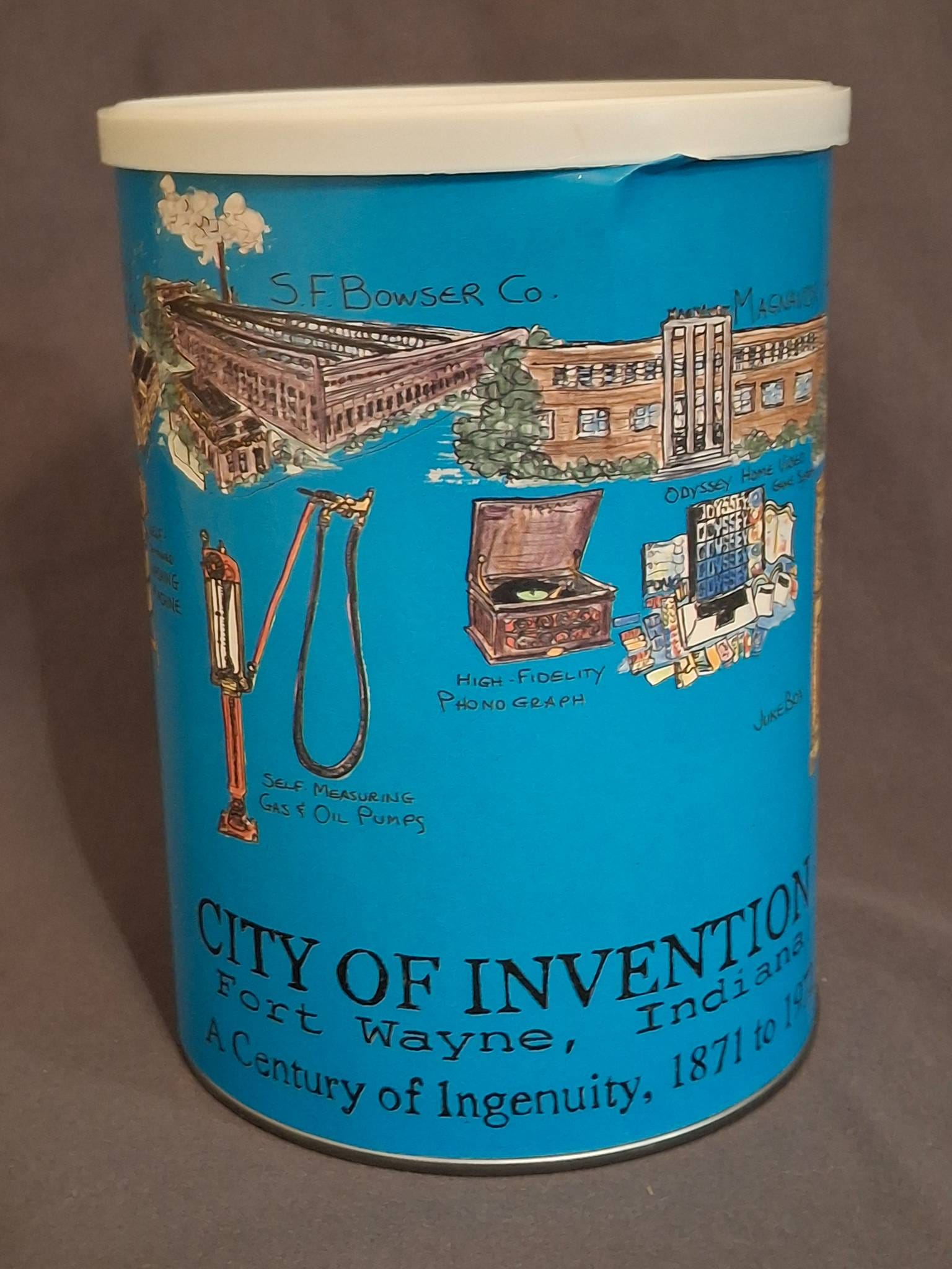 1239 Commemorative Metal Tin: ‘City of Invention, Fort Wayne, Indiana’ (Contents included)
