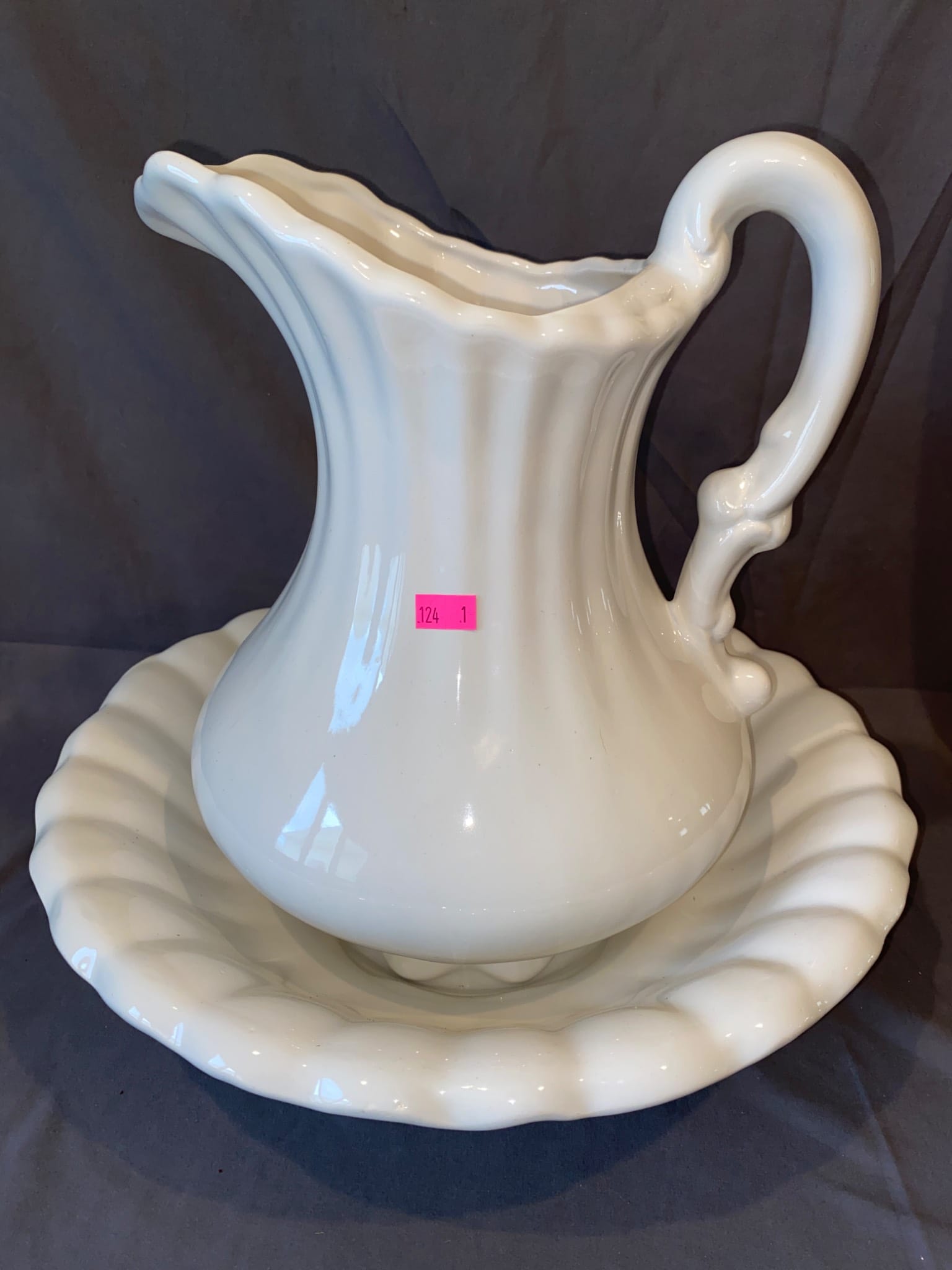 124 White Ceramic Pitcher and Basin Set 12”H