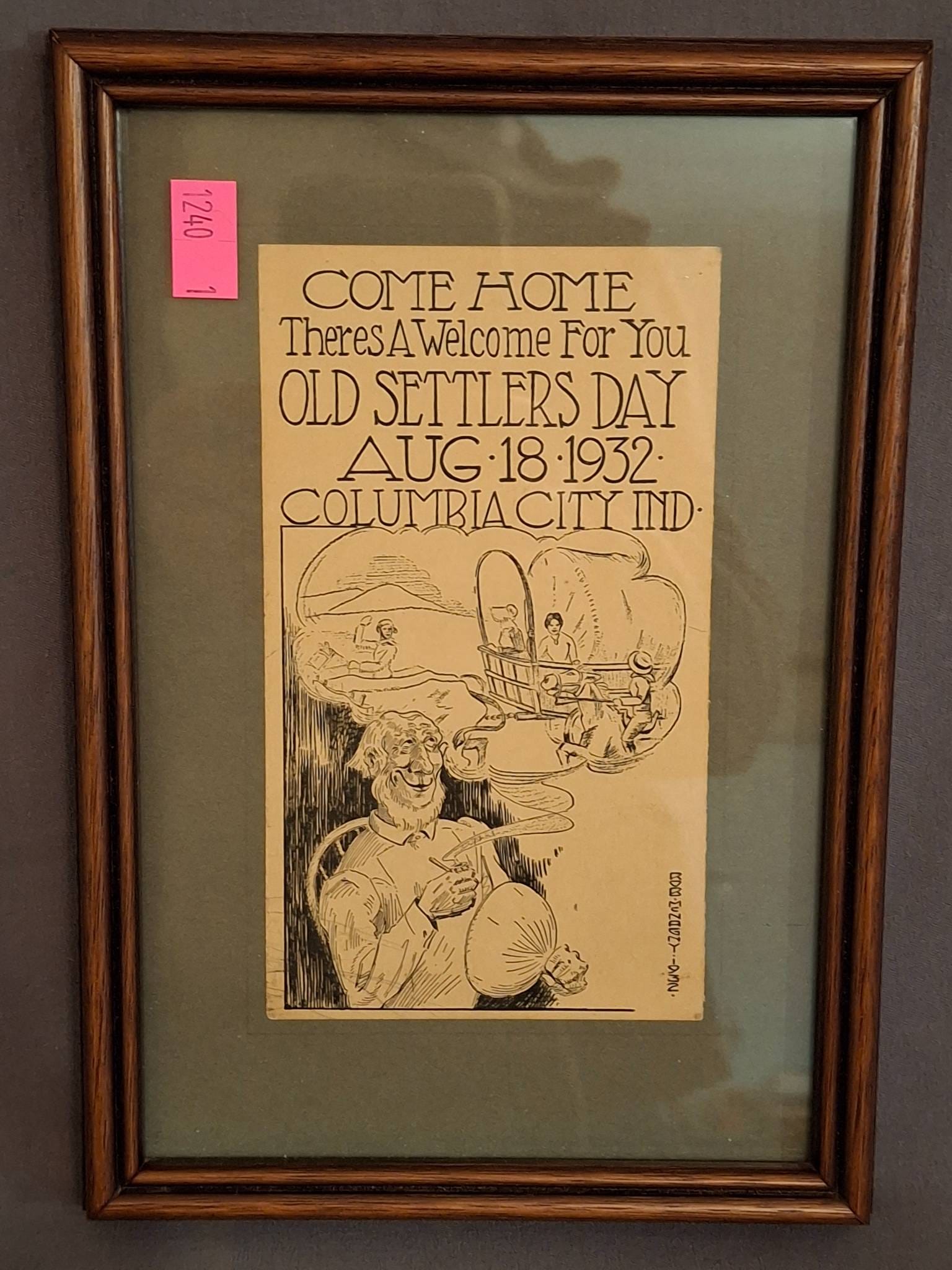 1240 Framed 1932 Columbia City Old Settlers Day Poster by Fort Wayne Frame Co.