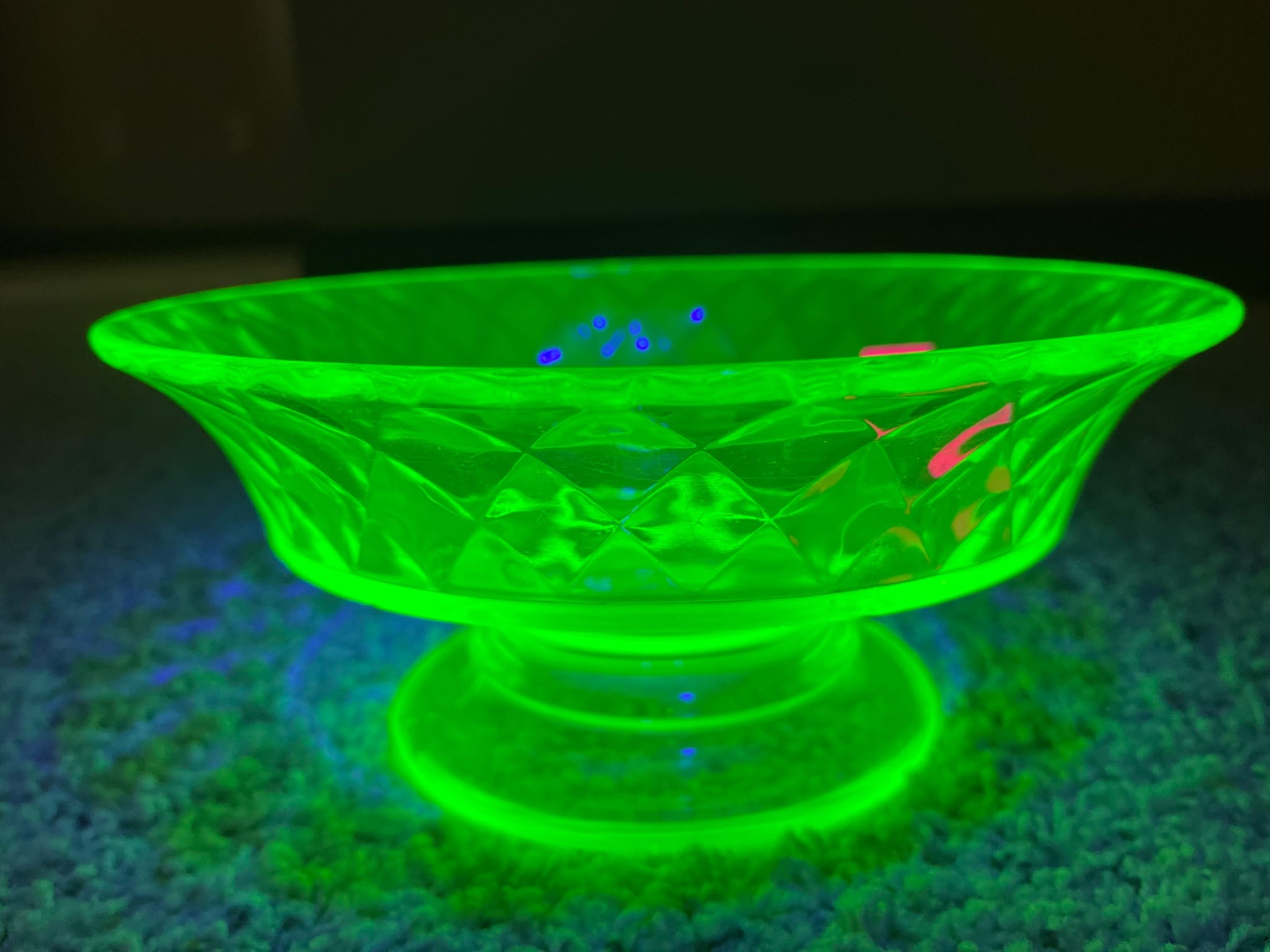 1247 Uranium Glass Compote Dish with Diamond Pattern, 8 Inches