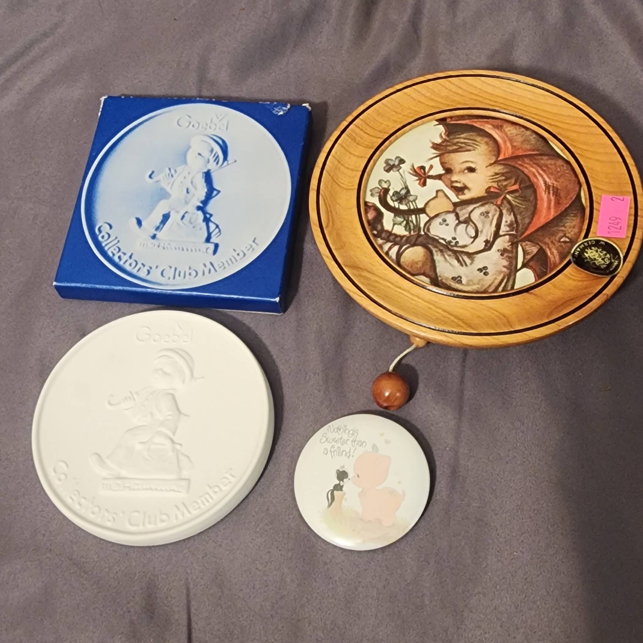 1249 Goebel Collectors Club Plate, Goebel Hummel Hanging Plaque, and Two Hummel-Themed Items