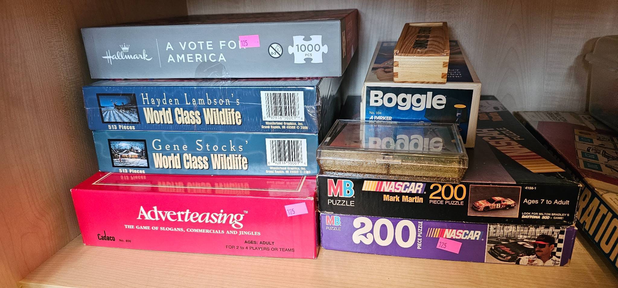 125 Board Games, Puzzles, Dominoes and Framed Cat Artwork