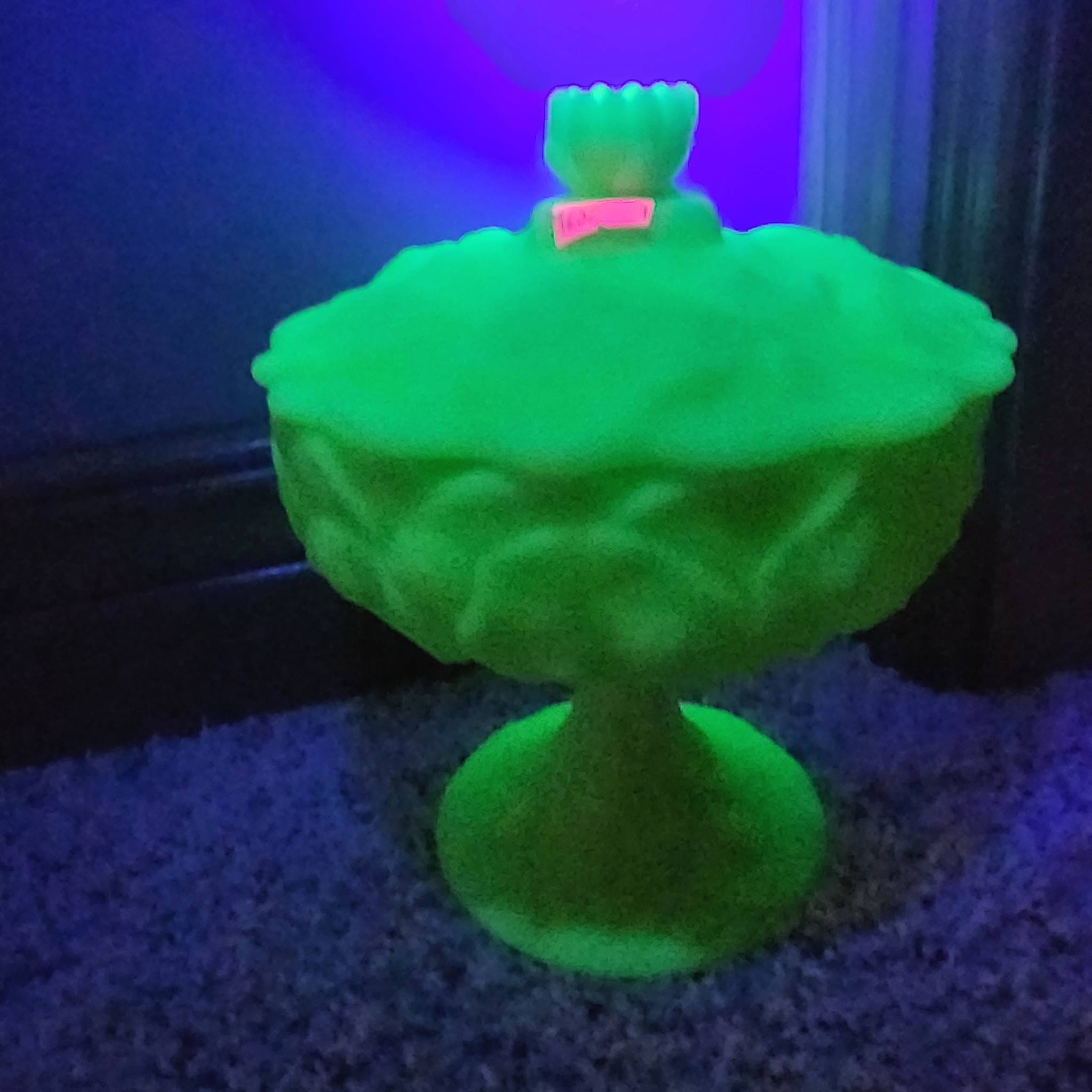 1252 Fenton Uranium Glass Covered Compote, 7? x 7?