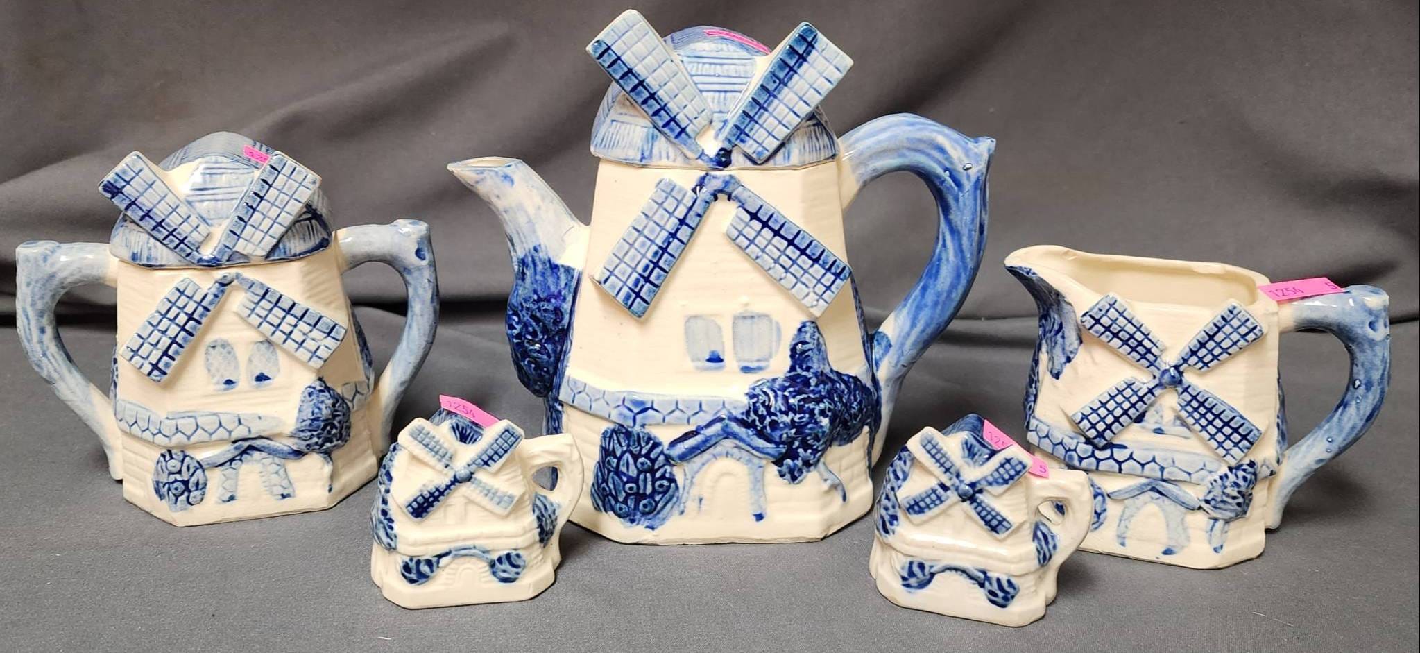 1254 Blue and White Ceramic Windmill Tea Set Made in Japan