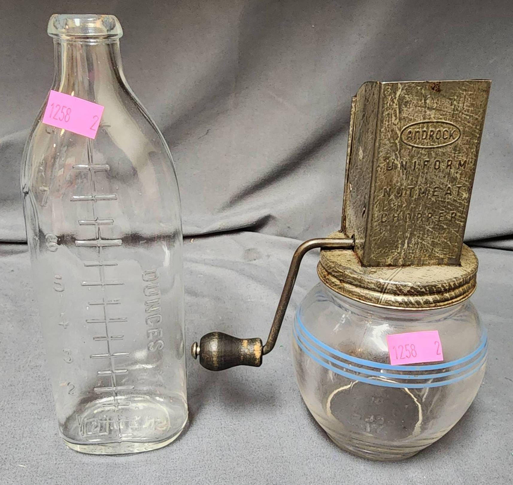 1258 Owens Glass Bottle and Androck Nut Chopper