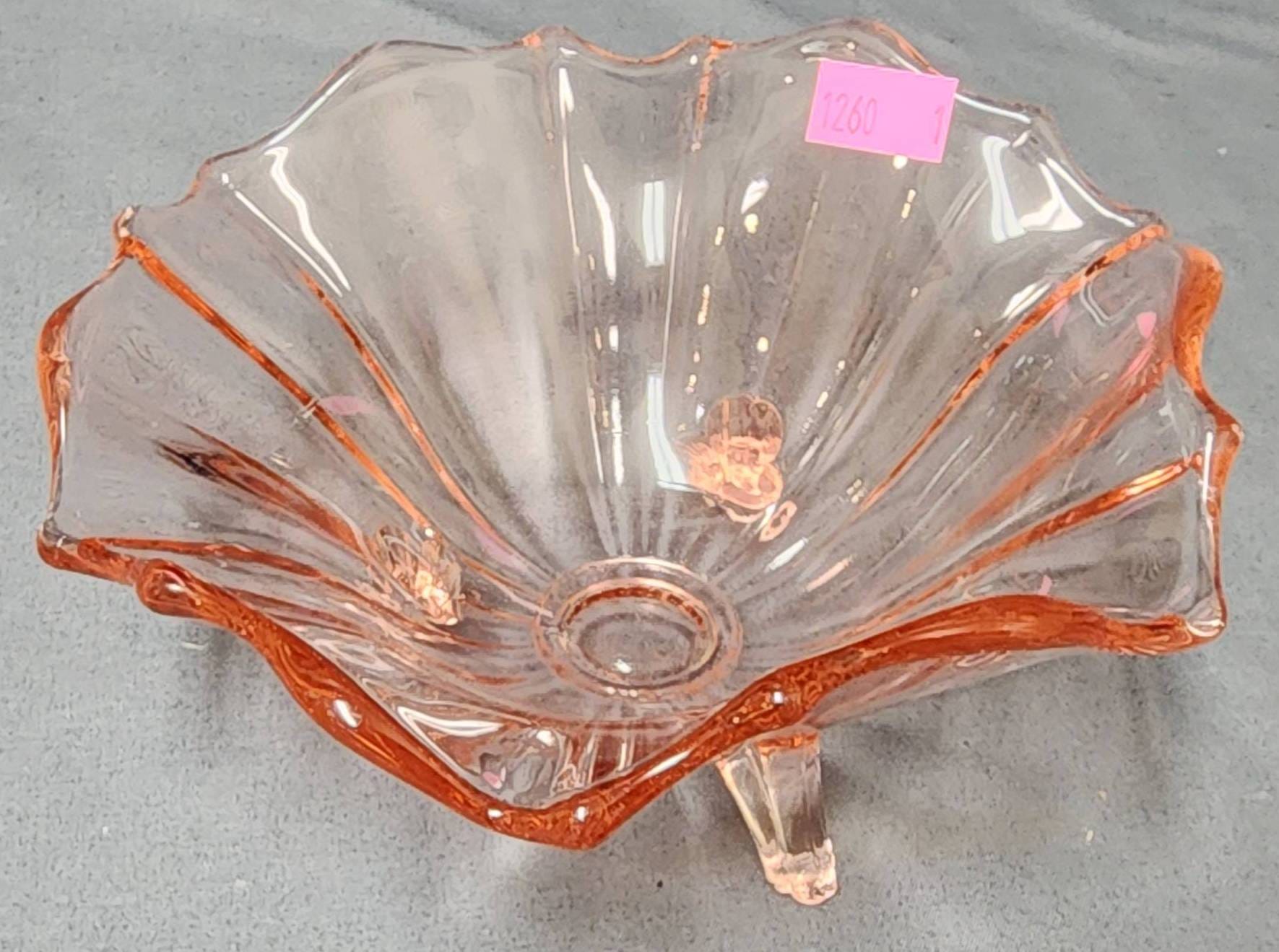 1260 Pink Depression Glass Footed Bowl with Flared Rim