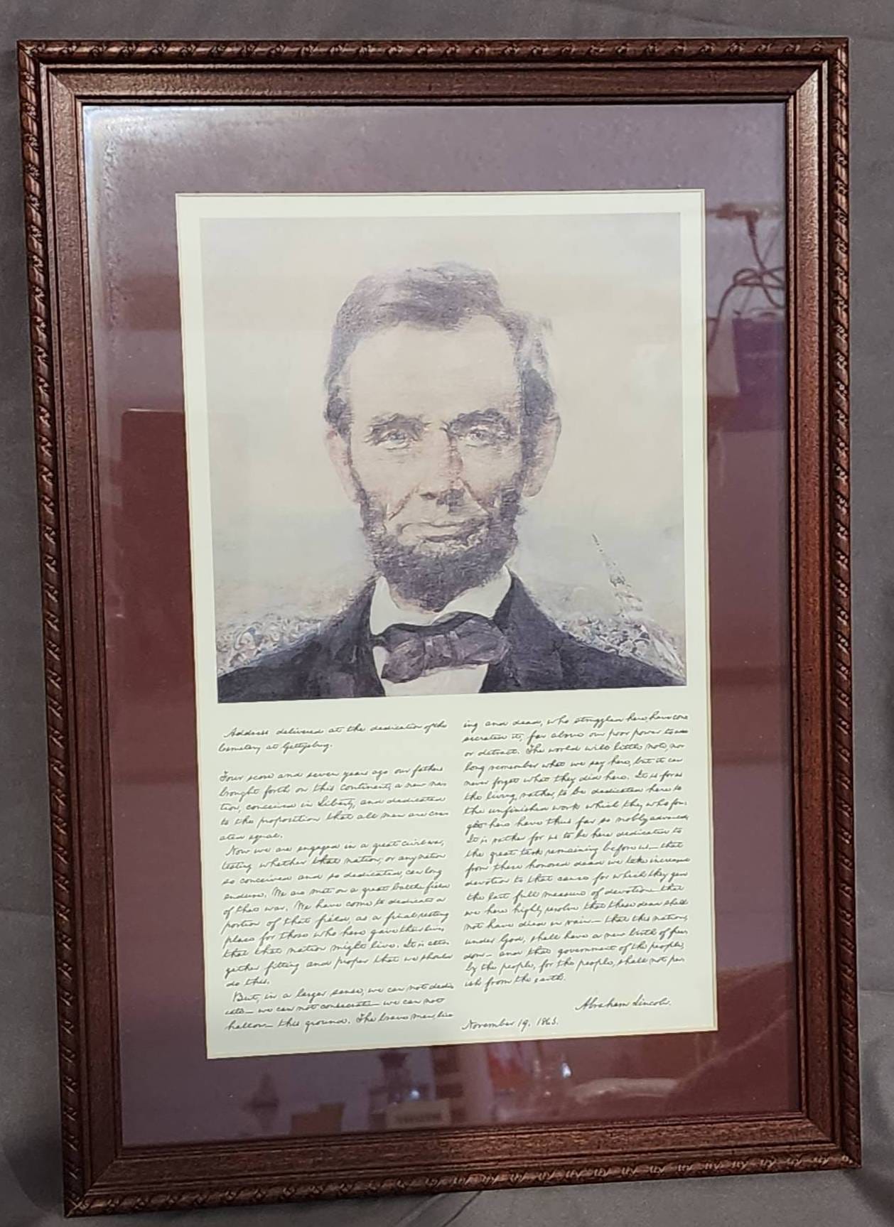 1268 Framed Print of Abraham Lincoln with Gettysburg Address by C.C. Beall 11.5?x 16?