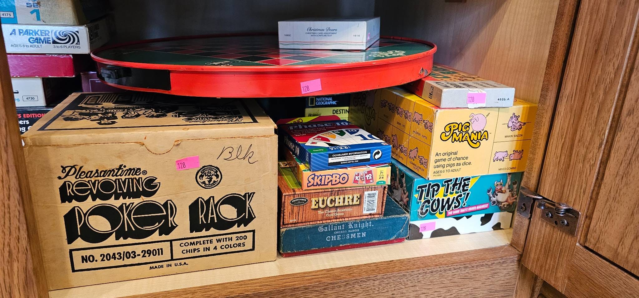 128 Board Games and Card Game Sets Including Poker Rack, Checkers, Skip-Bo and Others