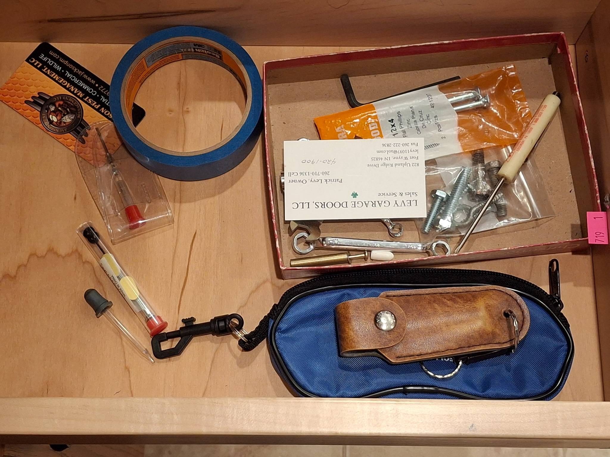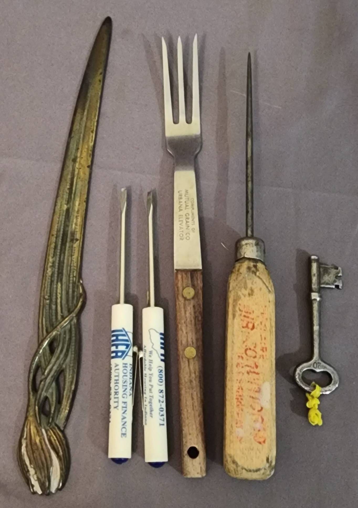 1283 Grouping of Various Tools and Key With Metal and Wood Components