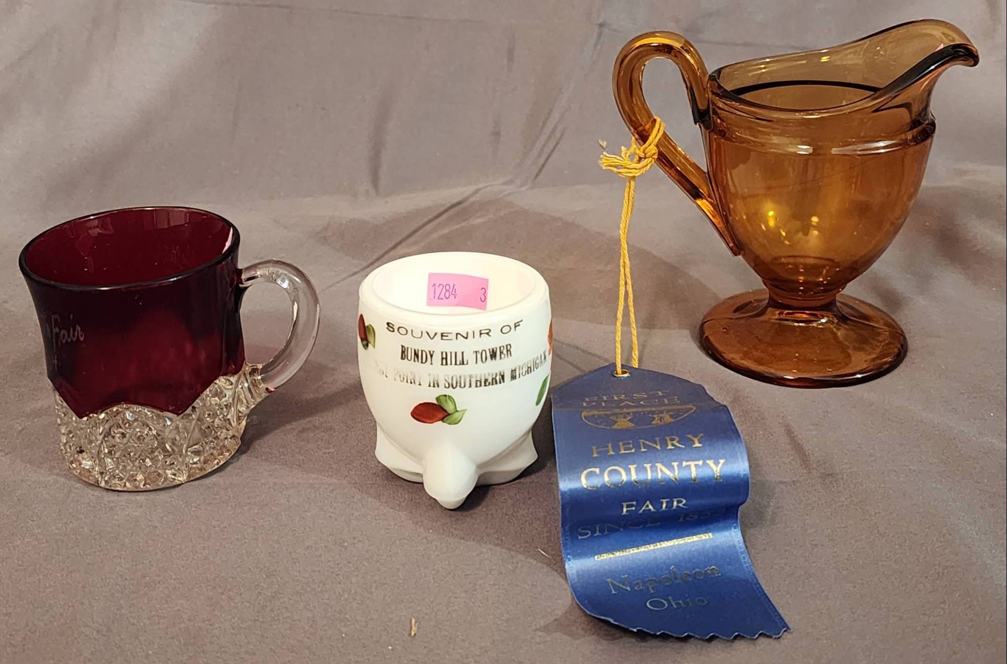 1284 Three Glass Items Featuring Ruby, Milk Glass, and Amber Pieces