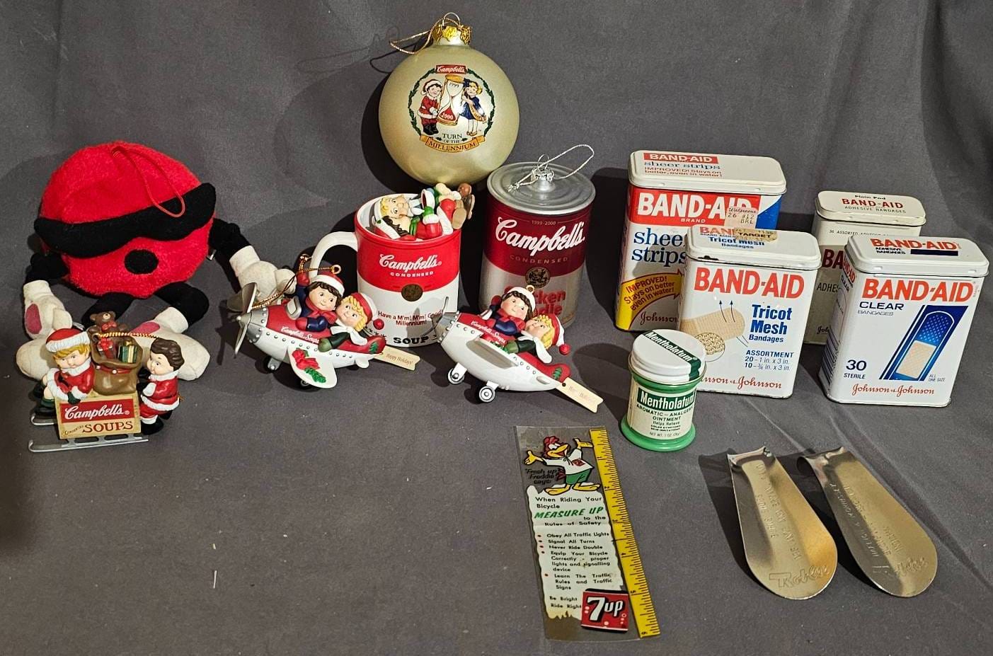 1291 Empty Bandaid Tins, Mentholatum Jar and Campbell’s-Themed Items