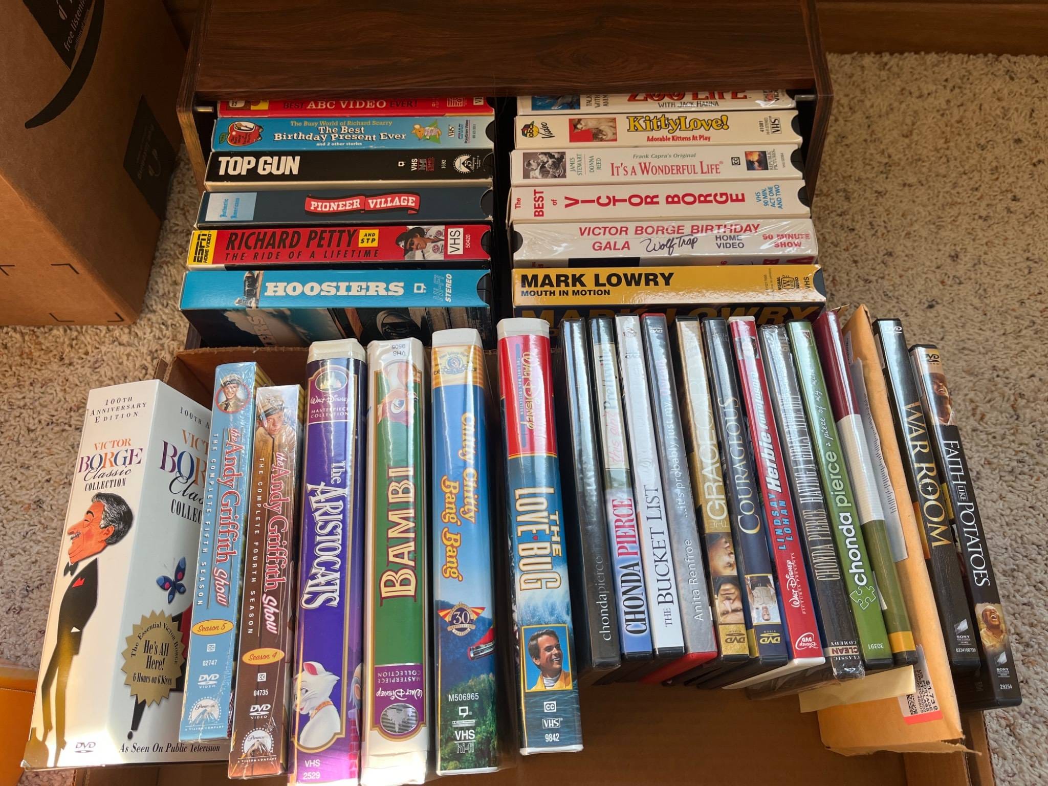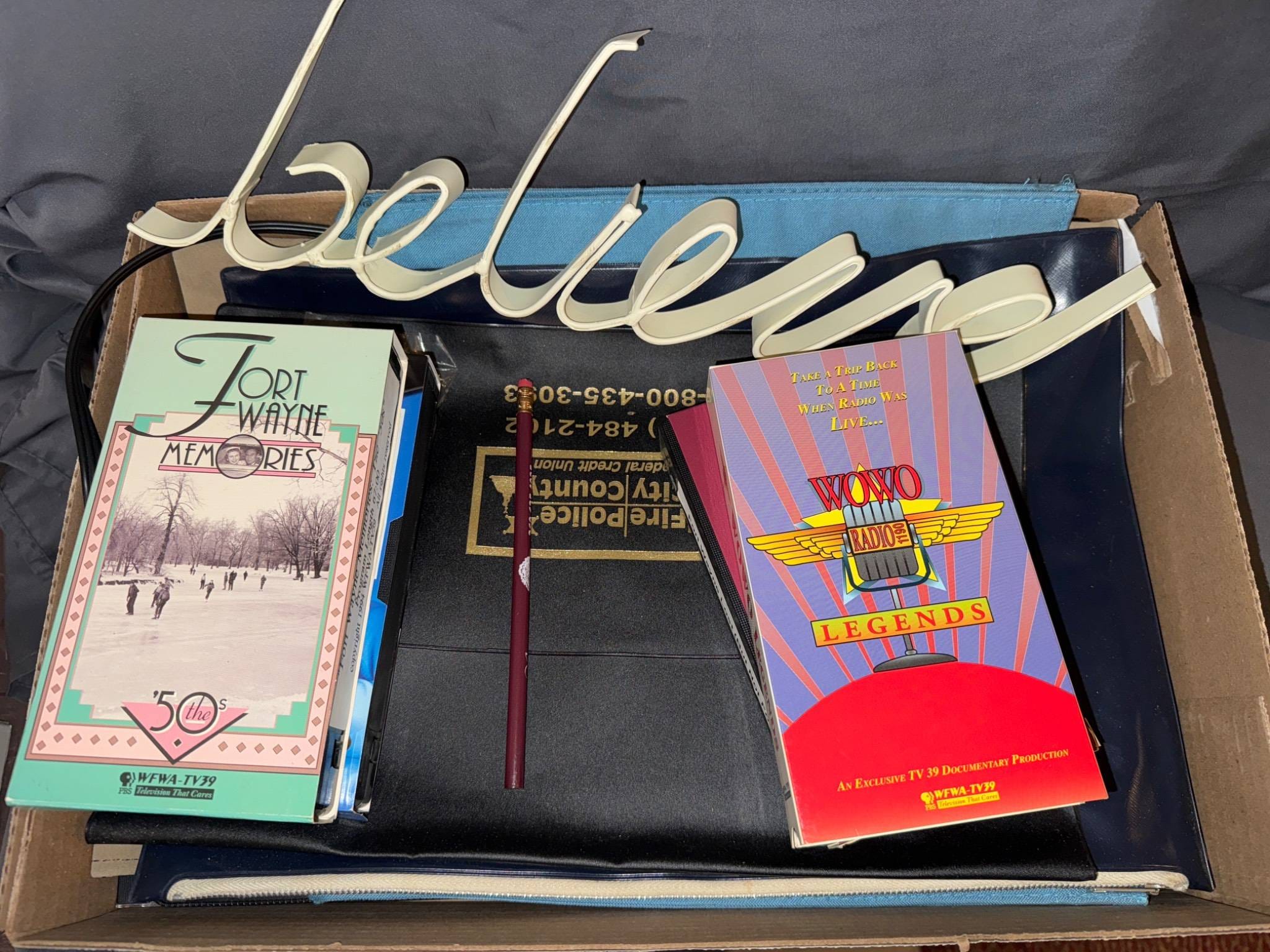 1295 Metal Script Sign, VHS Tapes, and Polka Music CD