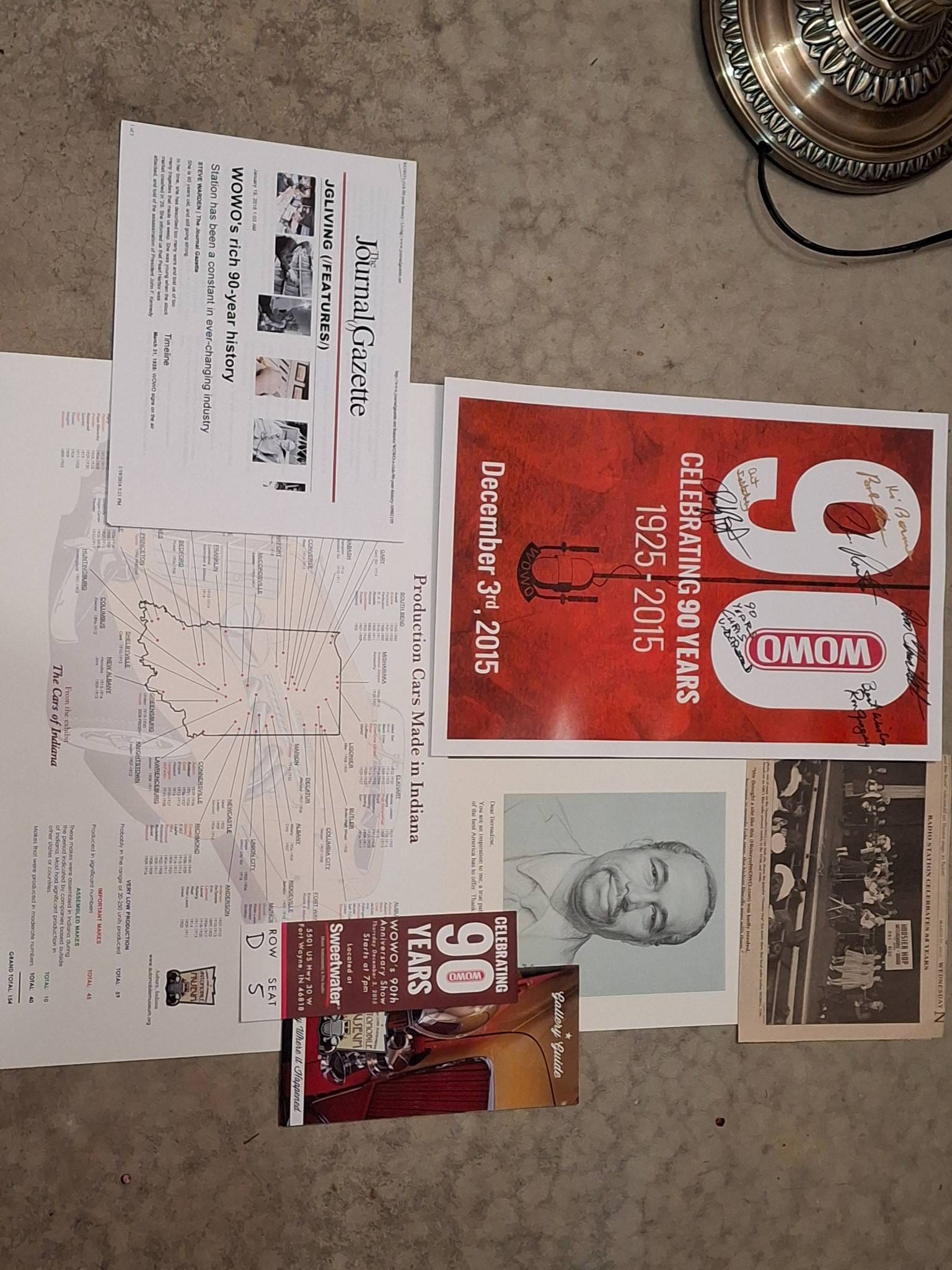 1304 WOWO 90th Anniversary Memorabilia from 1925-2015, Including Signed Poster and Ephemera