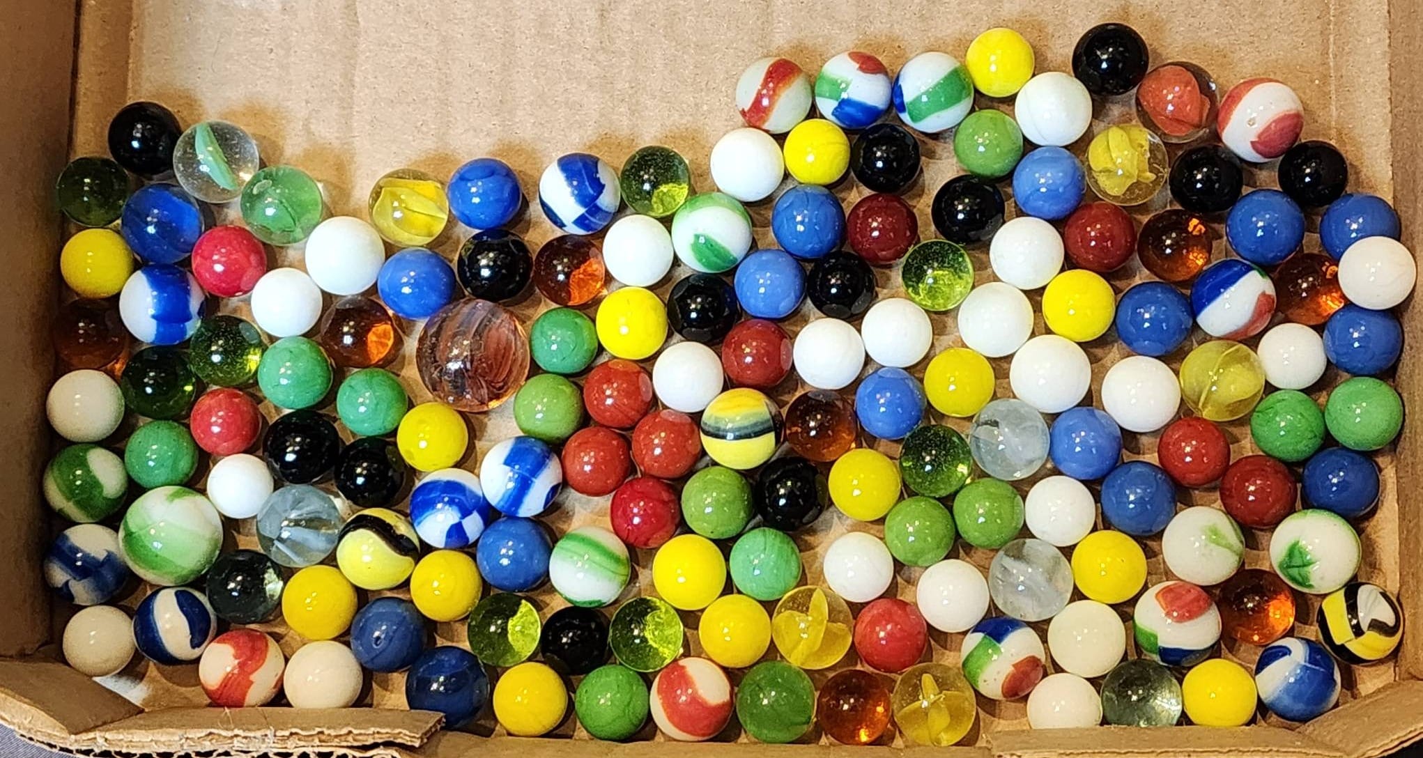 134 Glass Marbles in El Producto Little Coronas Cigar Box