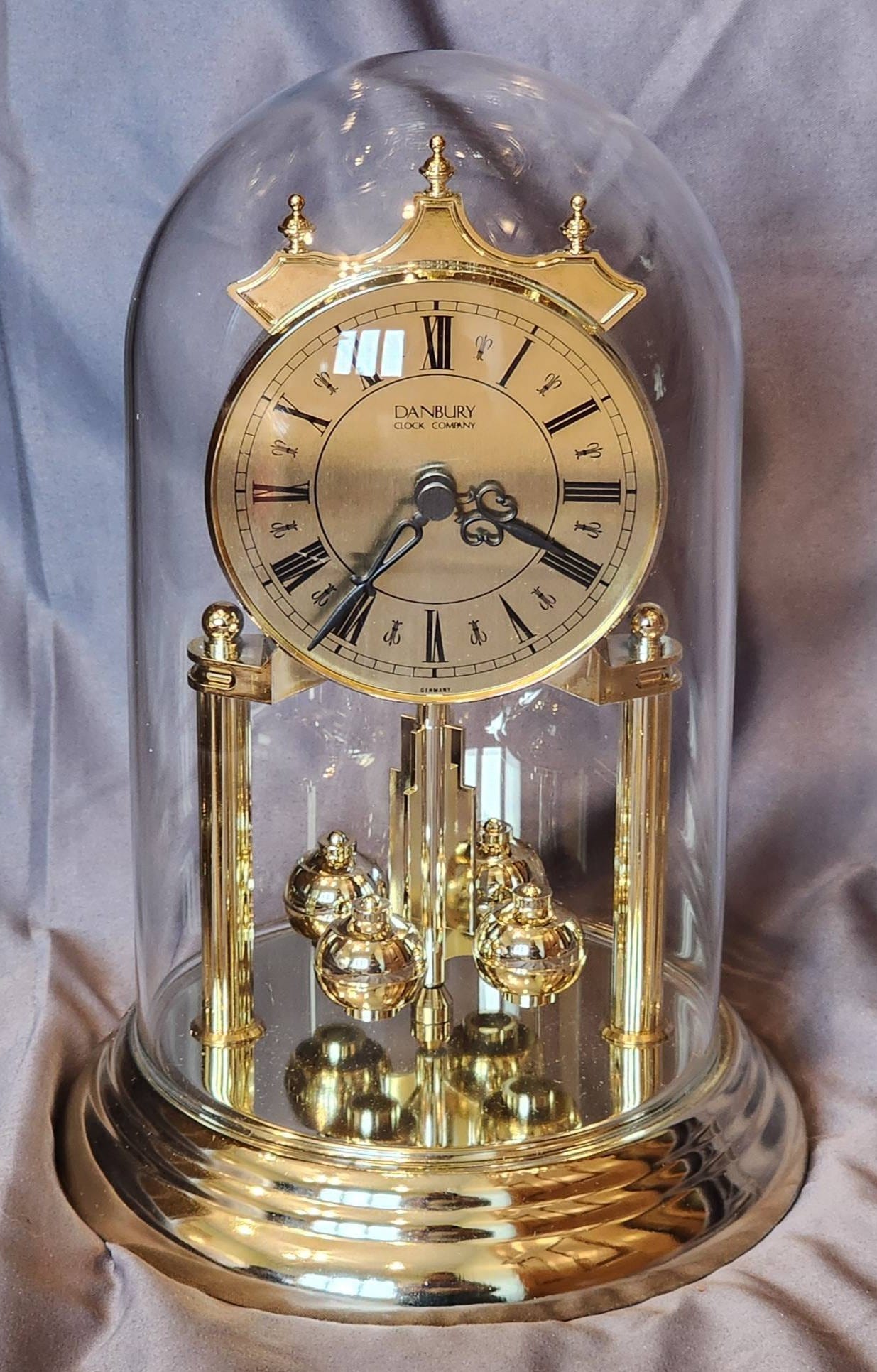 135 Danbury Clock Company Brass Anniversary Clock Under Glass Dome 10?