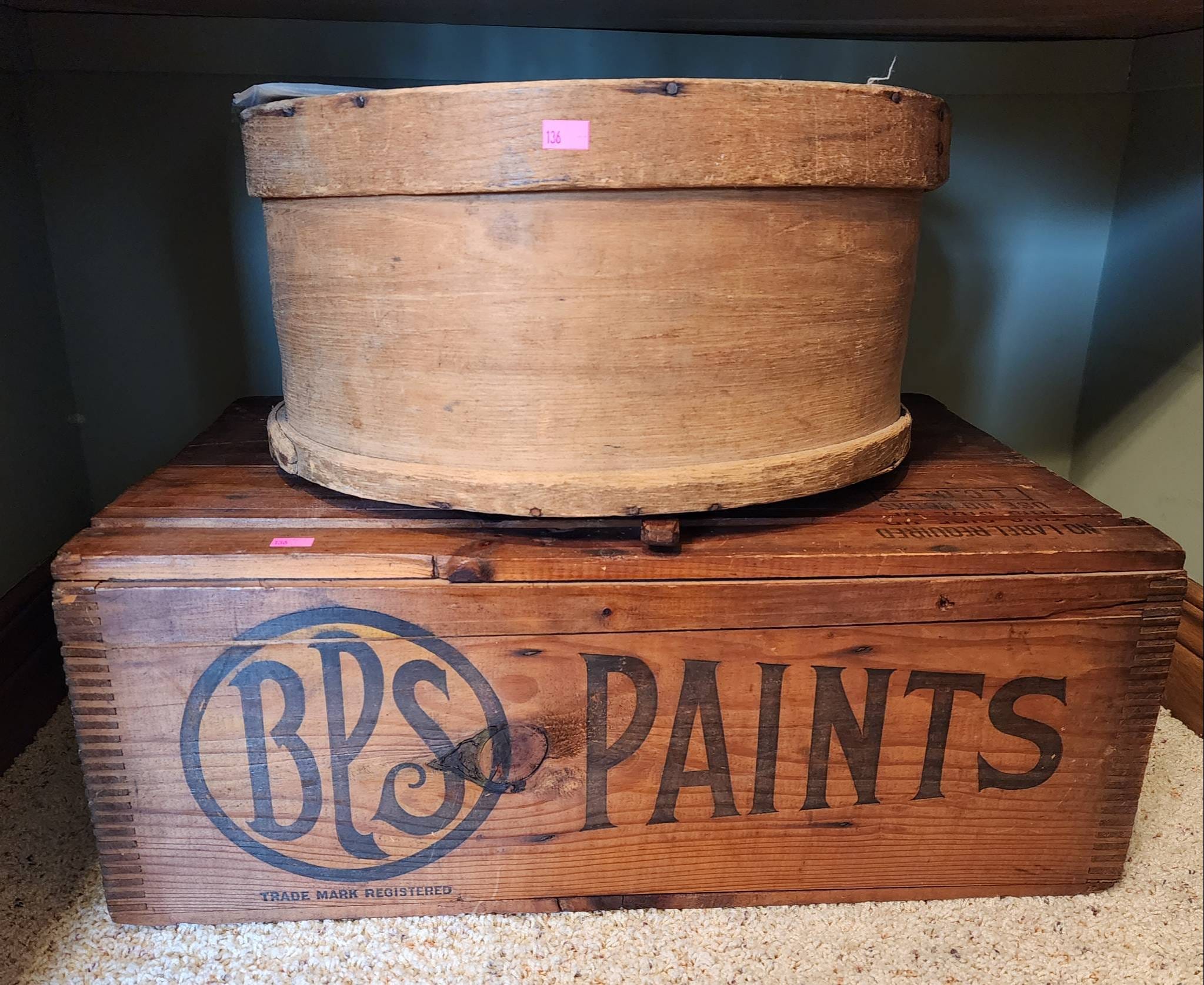 136 Cheese Box, BPS Paints Crate & Advertising Materials