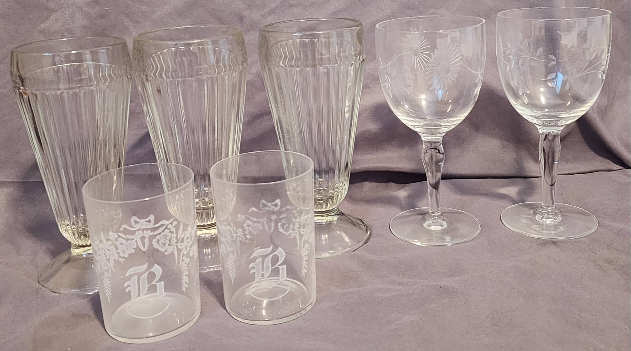 306 Engraved and Ribbed Glassware 4?-7?