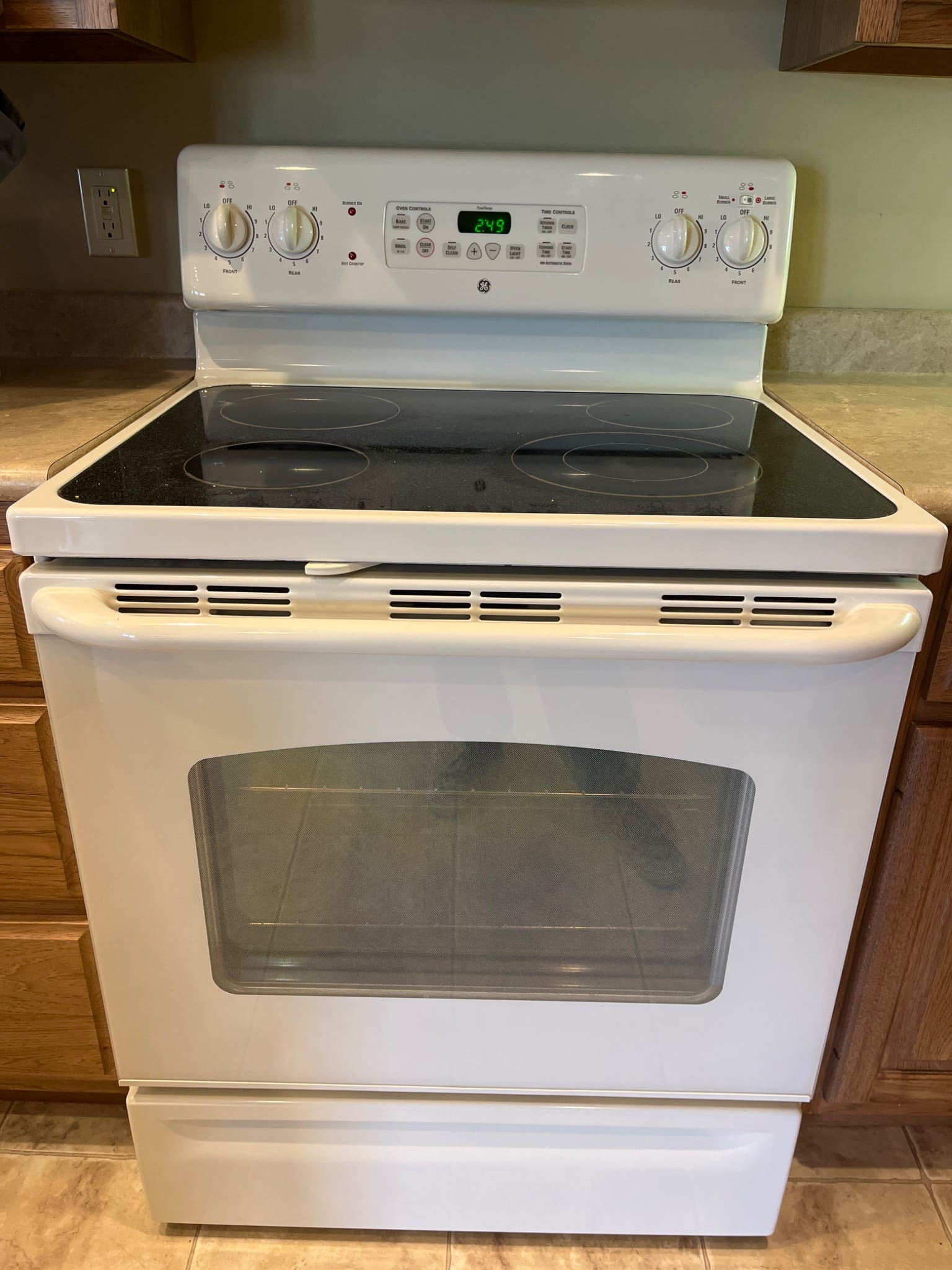 4 GE Electric Range with Smooth Glass Cooktop and Oven Controls