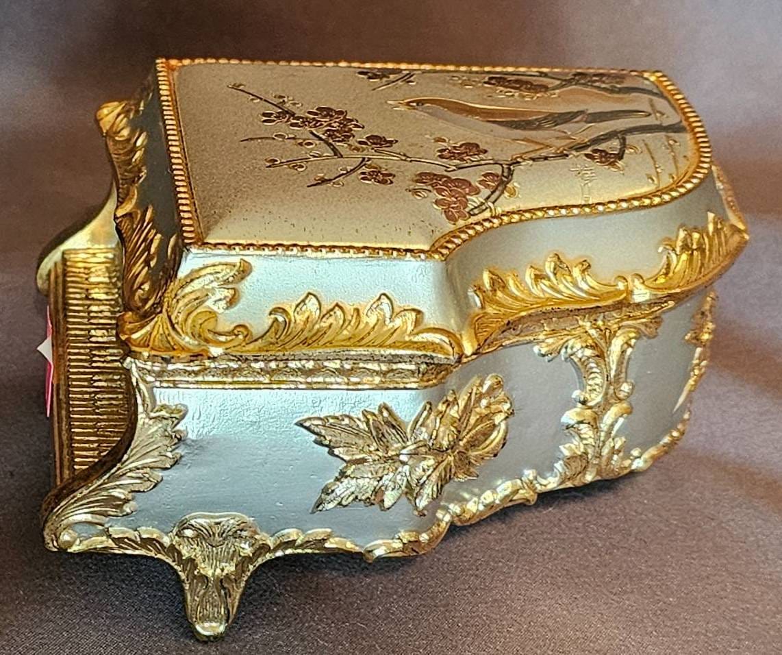 406 Evergreen Music Box Featuring Chokin Art and Gold-Tone Accents