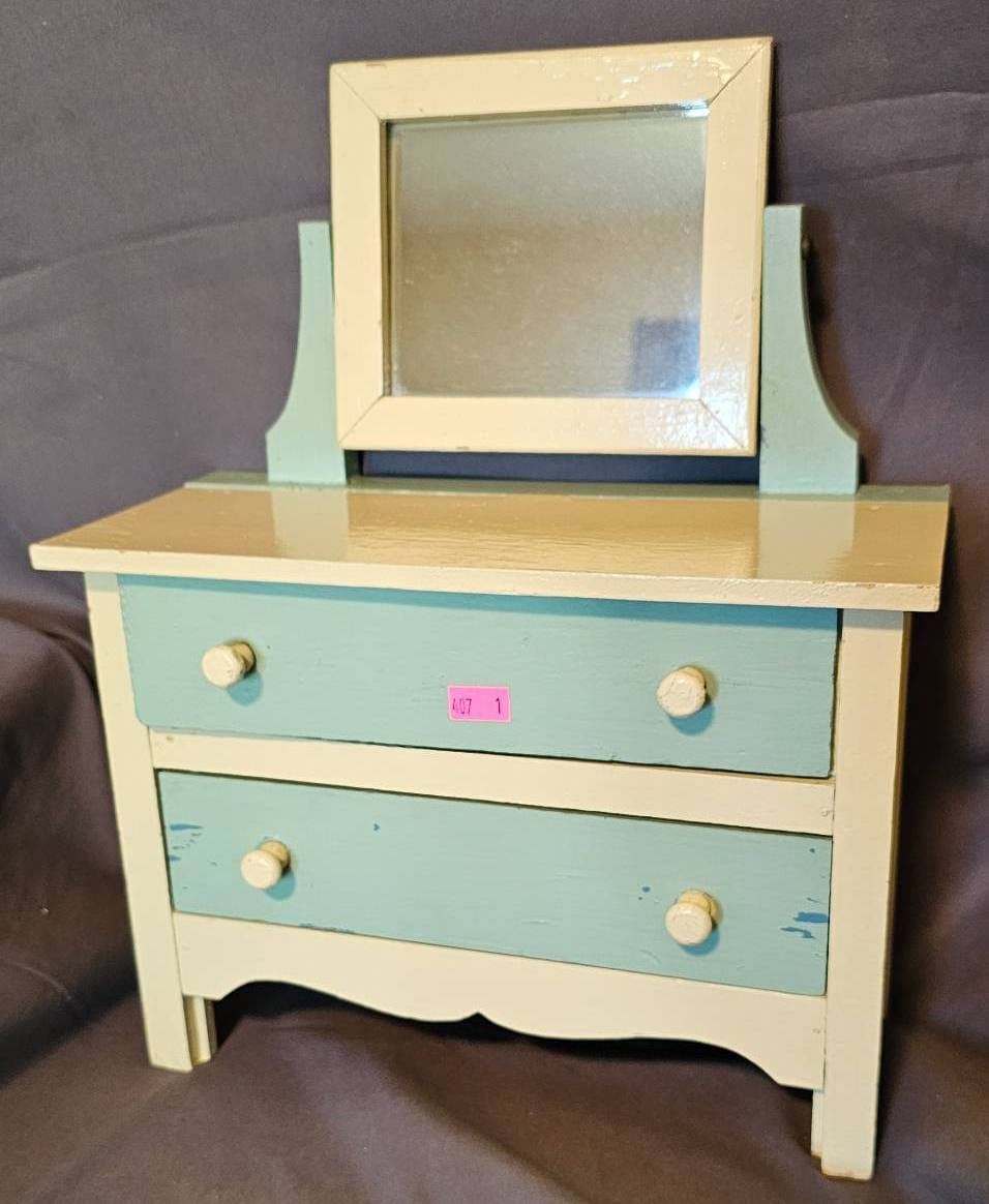 407 Miniature Toy Two-Drawer Dresser with Mirror