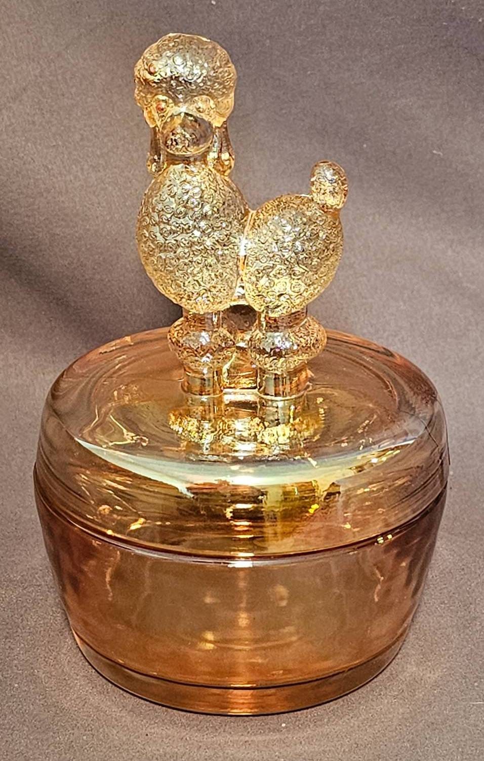 411 Amber Glass Lidded Dish with Poodle Motif