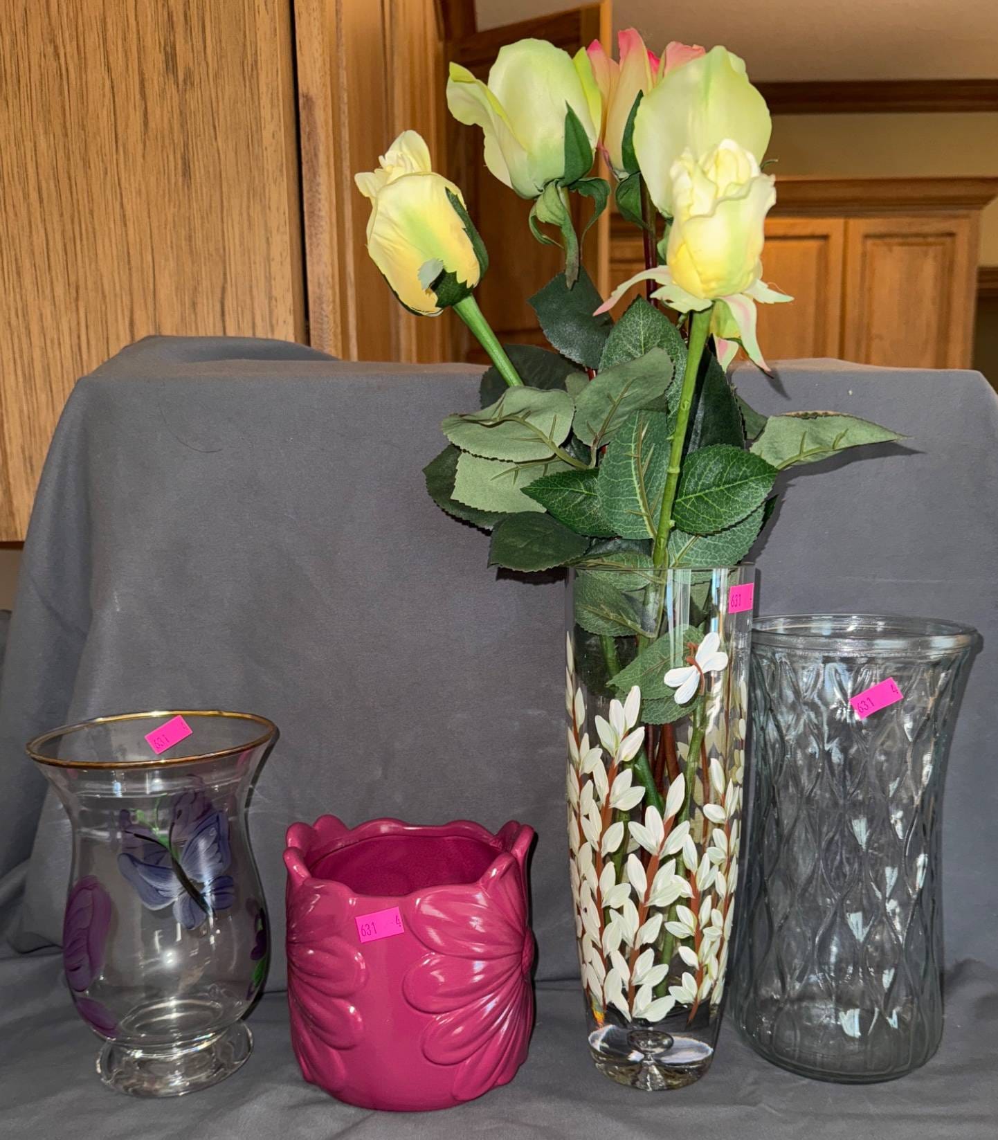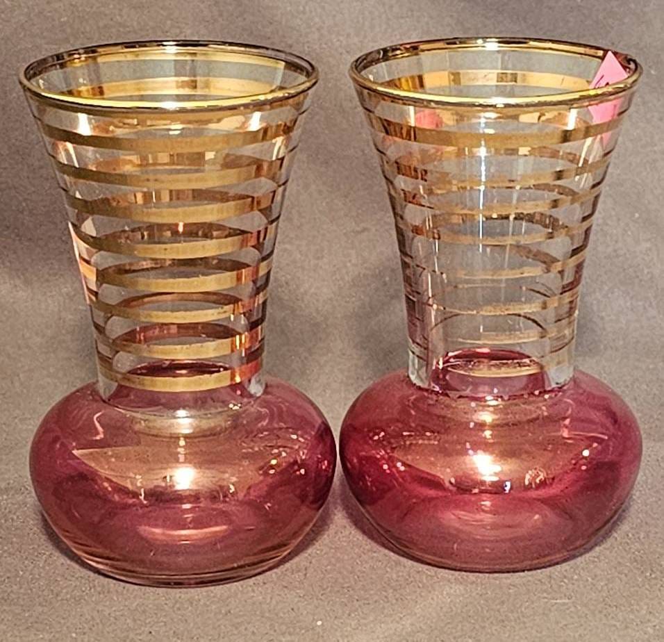 412 2 – Pink and Gold Tone Striped Vases 4?
