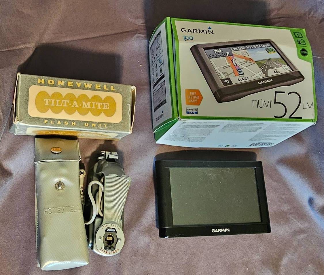 415 Honeywell Tilt-A-Mite Flash Unit with Case and Garmin Nuvi GPS Device