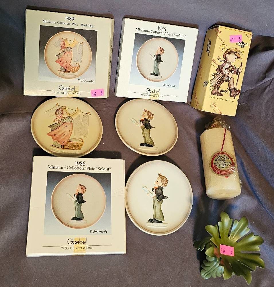 417 M.J. Hummel Plates, Candle and Metal Candle Holder Set